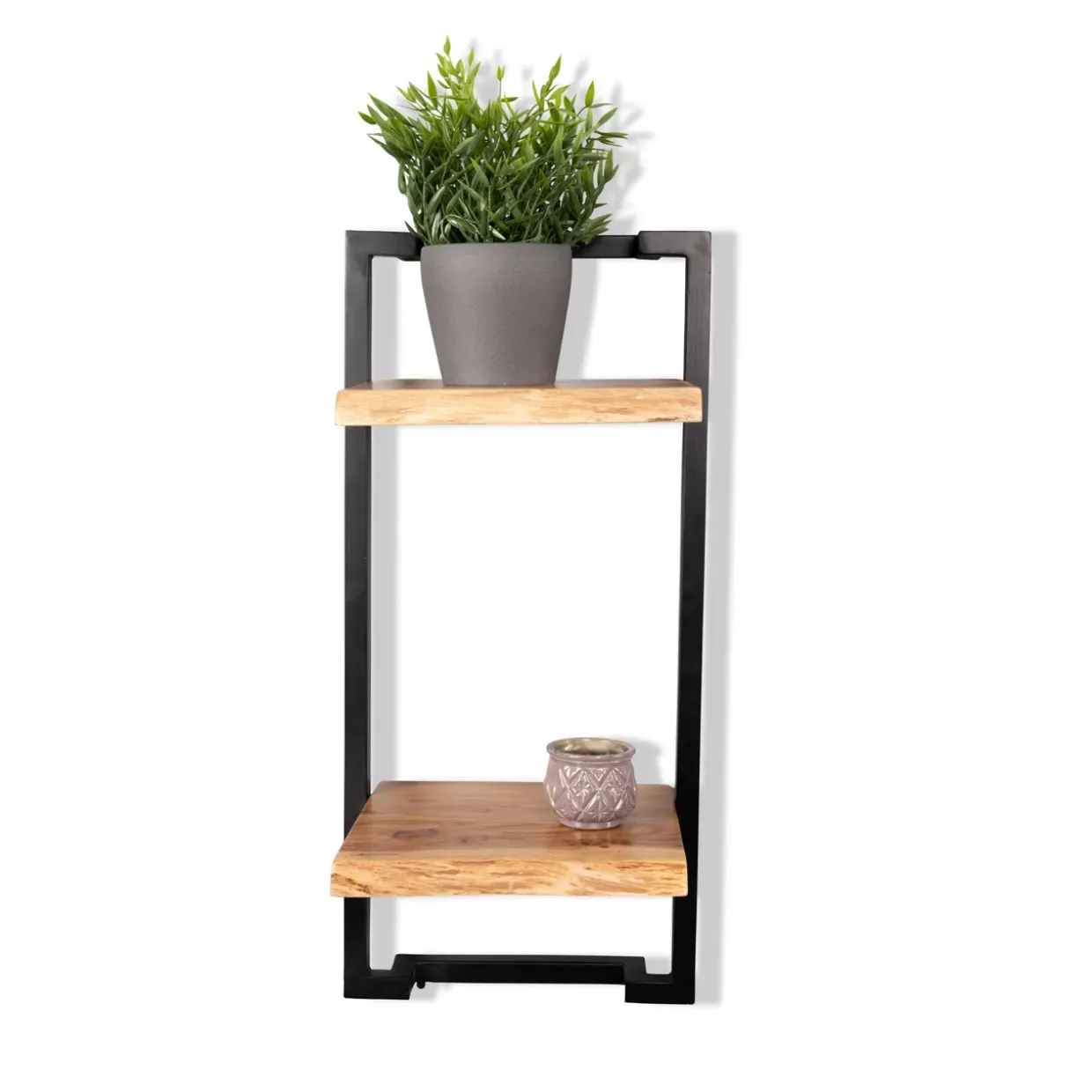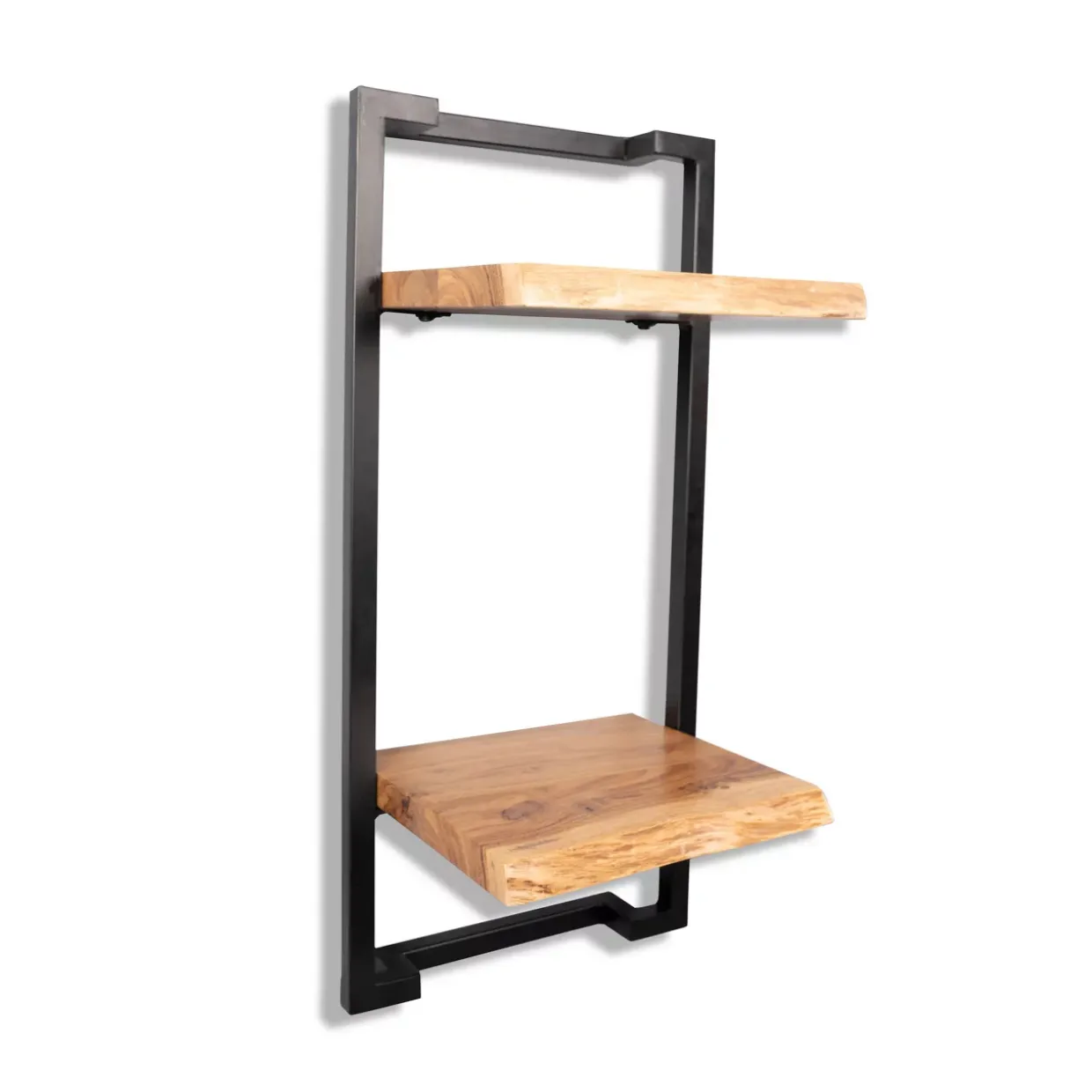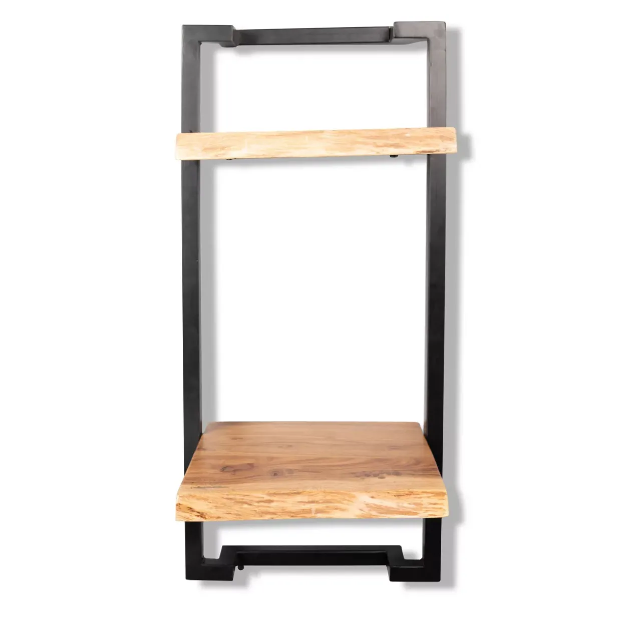Das Regal Angola 4 besticht durch sein modernes Design, das sich nahtlos in jedes stilvolle Interieur einfügt. Die Kombination aus massivem Akazienholz und schwarzen Metallrahmen verleiht diesem Möbelstück eine zeitlose Eleganz. Die natürliche Maserung des Holzes bietet einen charmanten Kontrast zu den klaren Linien des schwarzen Metalls, was dem Regal einen einzigartigen Charakter verleiht.