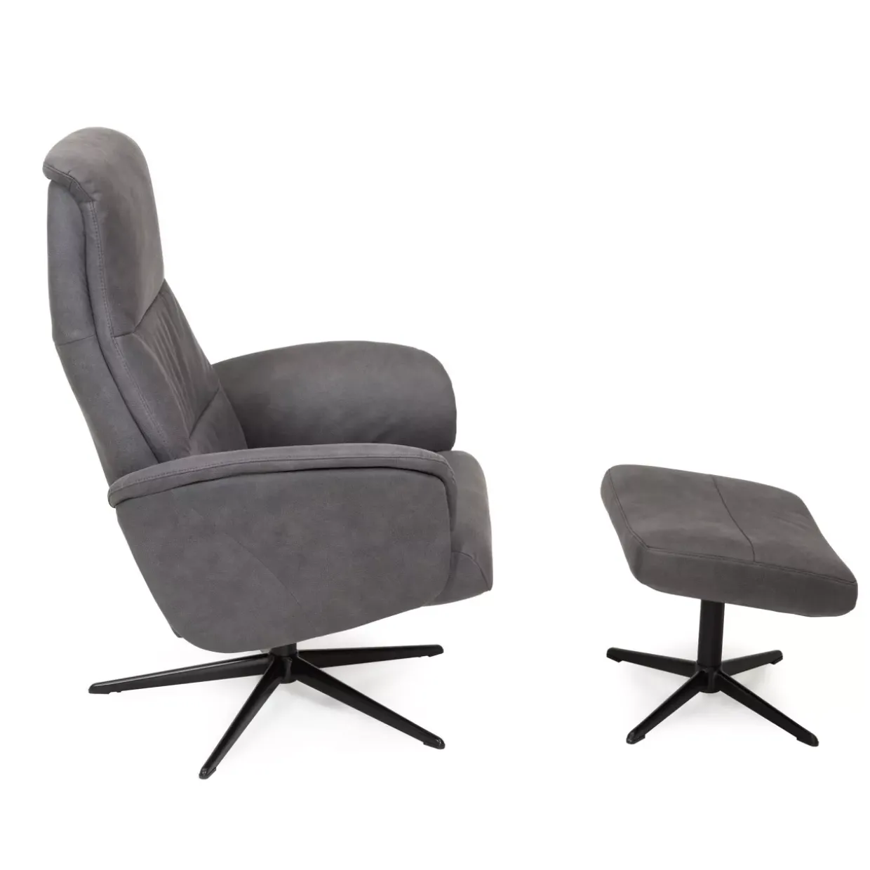 Ein echter Blickfang: Der Relaxsessel mit einem modernen Sternfuß-Design kombiniert sowohl Stil als auch Funktionalität. Die elegante Farbgebung in Python-Anthrazit und Schwarz fügt sich harmonisch in jedes zeitgemäße Raumkonzept ein. Für den Komfort sorgt eine raffinierte Kombination aus Stoff und Metall, die sowohl Robustheit als auch Gemütlichkeit verspricht.