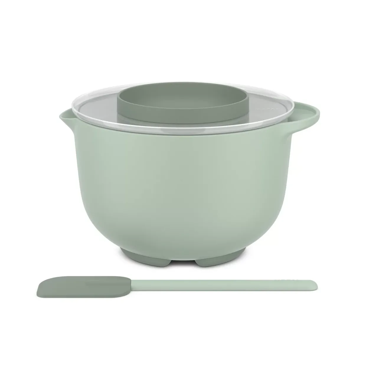 Die moderne Eleganz des Chef It Sets in nordic sage verleiht jeder Küche einen Hauch von Stil. Ganzjährig einsetzbar, bietet dieses Set aus robustem Kunststoff alles, was Sie zum Backen und Kochen benötigen. Mit einer beeindruckenden Kapazität von 3 Litern ist die Rührschüssel ideal für die Zubereitung verschiedenster Mischungen, von Teigen bis zu Saucen. Der rutschfeste Boden und der Antirutsch-Ring sorgen dafür, dass die Schüssel stabil auf der Arbeitsfläche bleibt, während der praktische Ausgießer und der robuste Griff das Ausgießen erleichtern.