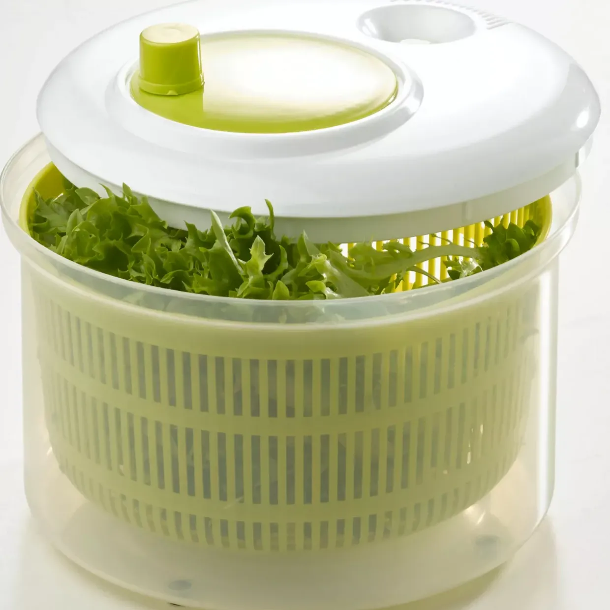 Die Farbkombination aus Weiß und Grün verleiht der Salatschleuder eine frische, ansprechende Optik, die sich nahtlos in jede Kücheneinrichtung einfügt. Diese harmonische Farbgestaltung kann Ihre Arbeitsfläche beleben und für ein angenehmes Ambiente sorgen.