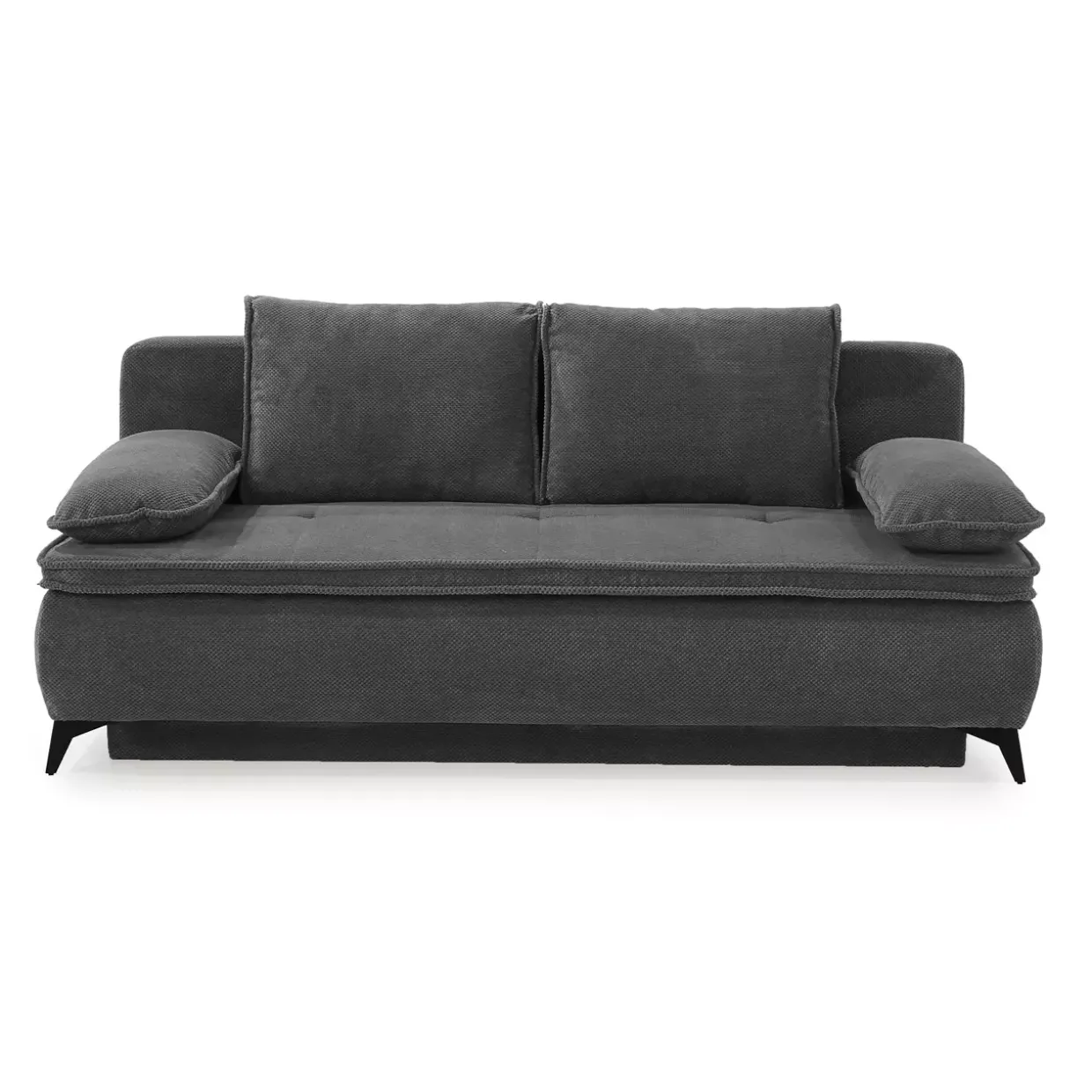Ein Waffelcord-Bezug verleiht diesem Schlafsofa eine elegante und moderne Optik, die in jedem Wohnraum überzeugt. Die Kombination aus grauen und schwarzen Farbtönen harmoniert perfekt mit dem edlen Materialmix aus Stoff und Metall. Erleben Sie den Komfort der Wellenunterfederung und Kaltschaumpolsterung, die sowohl in Sitz als auch Rücken für ein angenehmes Sitzgefühl sorgt.