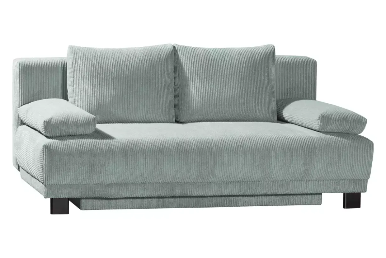 Ein stilvoller Begleiter für Ihr Zuhause: Das Juna Schlafsofa beeindruckt mit seinem konventionellen Design und einer charmanten Kombination aus Kord in Hellblau und schwarzem Metall. Diese harmonische Farbgebung fügt sich mühelos in verschiedene Wohnstile ein und verleiht Ihrem Raum eine elegante Note.