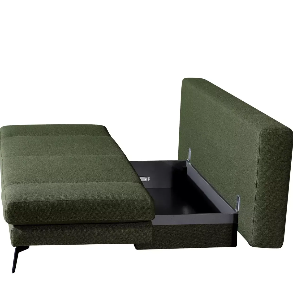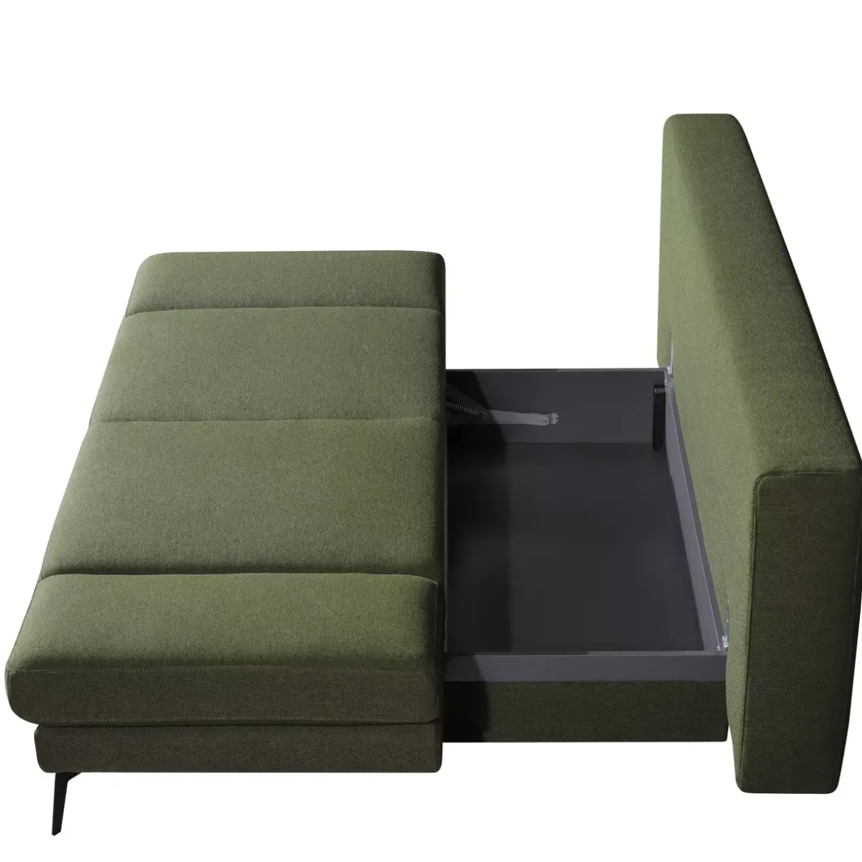 Das grüne und schwarze Design schafft eine harmonische Farbgebung, die sowohl auffällig als auch dezent wirkt. Der Rücken des Schlafsofas ist in echter Ausführung gefertigt, was für eine hochwertige Verarbeitung und eine ansprechende Optik sorgt.