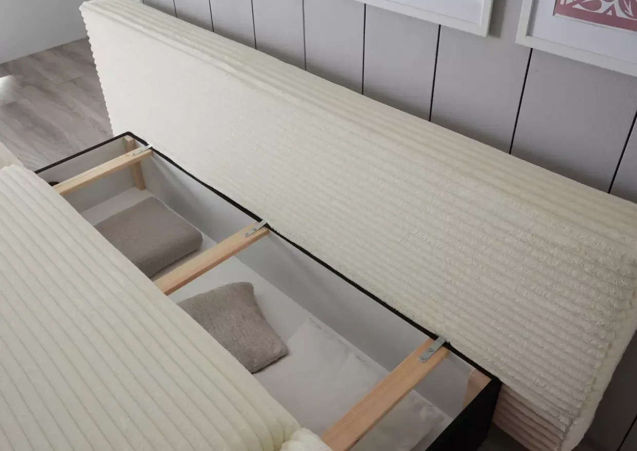Ein weiterer Vorteil ist der integrierte Bettkasten, der zusätzlichen Stauraum für Decken und Kissen bietet und so für Ordnung sorgt. Dank der Schlaffunktion lässt sich das Sofa im Handumdrehen in ein bequemes Bett umwandeln, ideal für Gästeübernachtungen oder entspannte Abende.