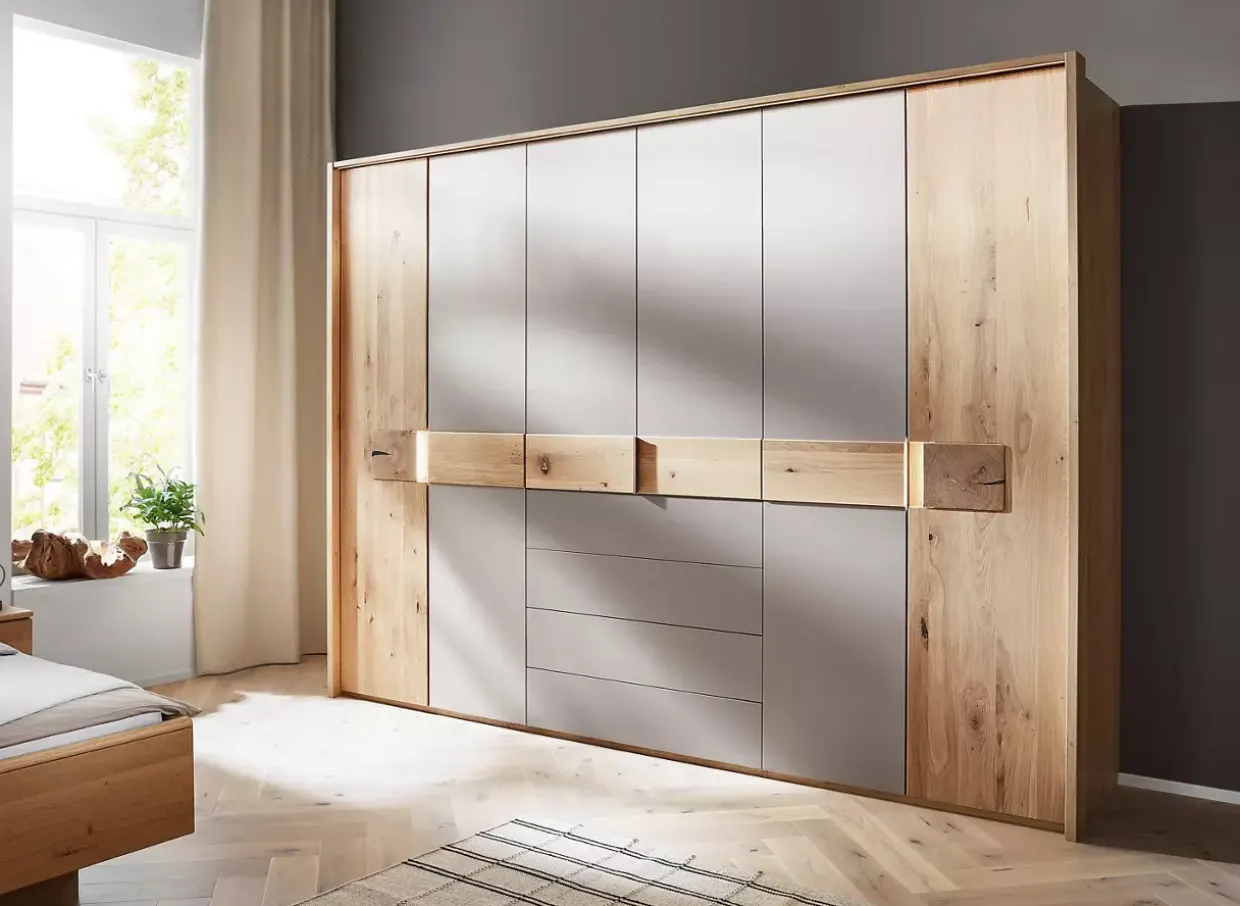 Für alle, die Wert auf stilvolles und zugleich praktisches Design legen, bietet diese Schlafzimmerausstattung eine gelungene Kombination aus beidem. Die durchdachten Details machen es zu einem Ort der Erholung, der zugleich durch seine hochwertige Verarbeitung besticht. Lassen Sie sich von der natürlichen Eleganz überzeugen.