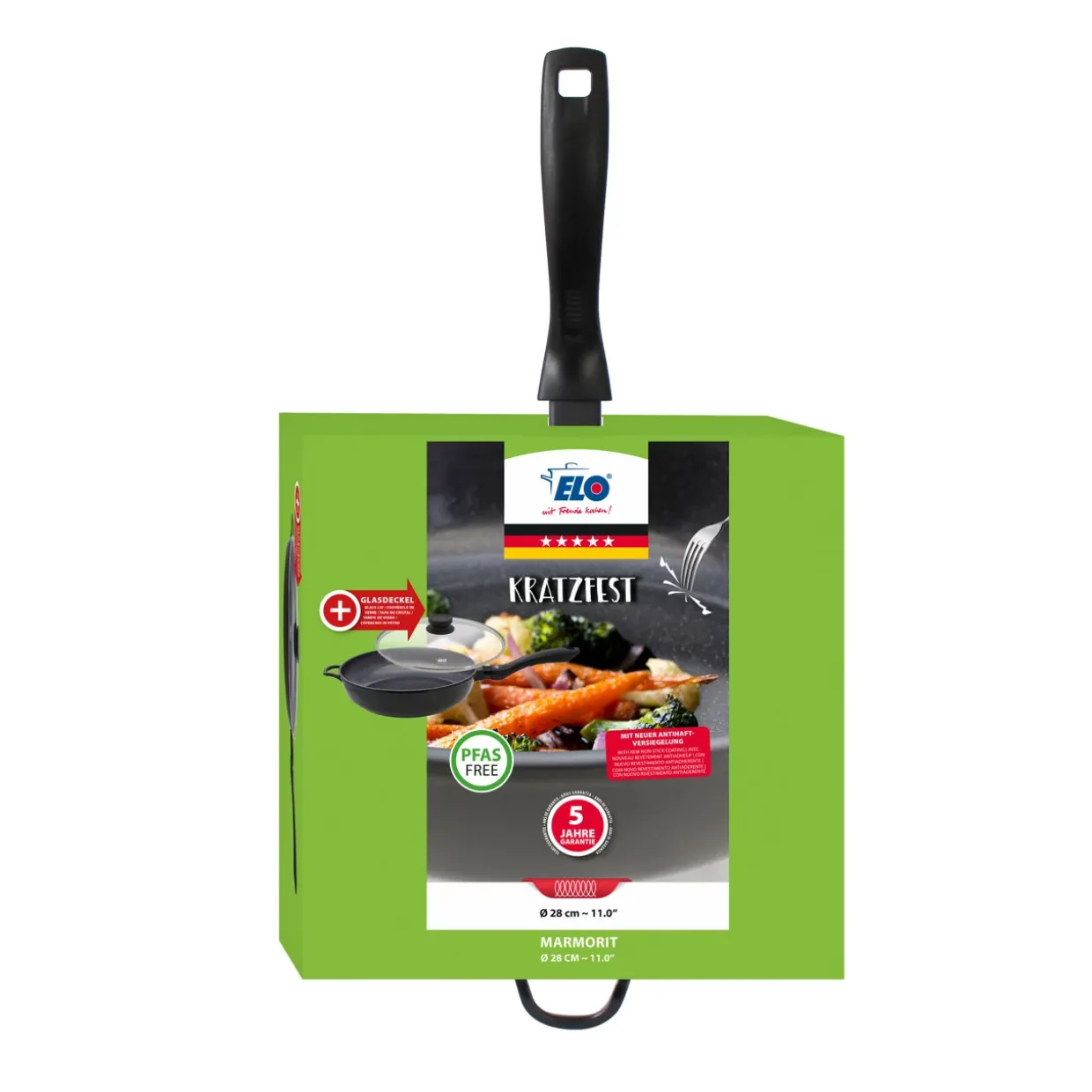 Die Marmorit-Beschichtung ist nicht nur ein optisches Highlight, sondern auch funktional. Sie erleichtert das Reinigen und verhindert das Anhaften von Speisen. Diese Schmorpfanne vereint modernes Design mit hoher Funktionalität und wird so zu einem unverzichtbaren Werkzeug in Ihrer Küche.
