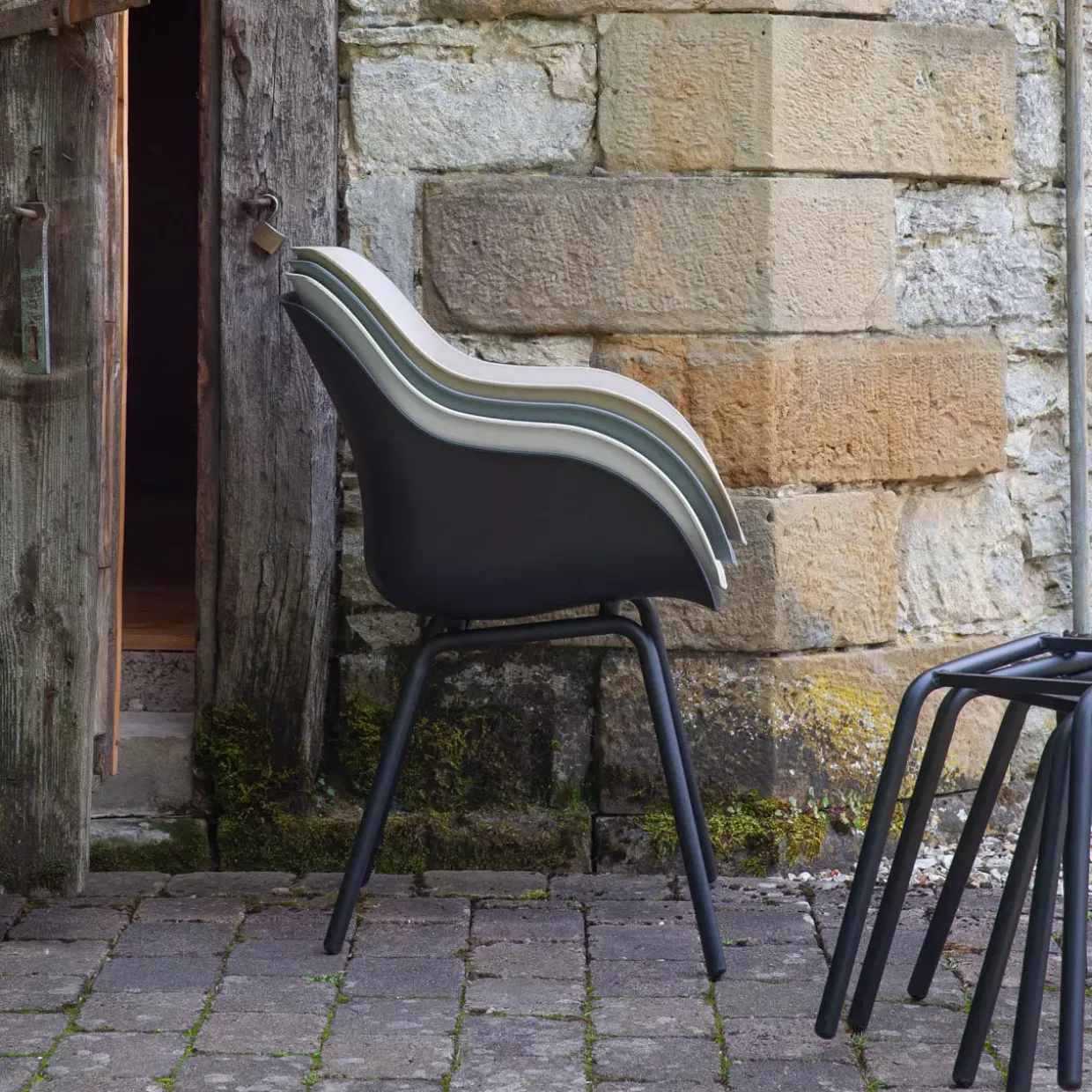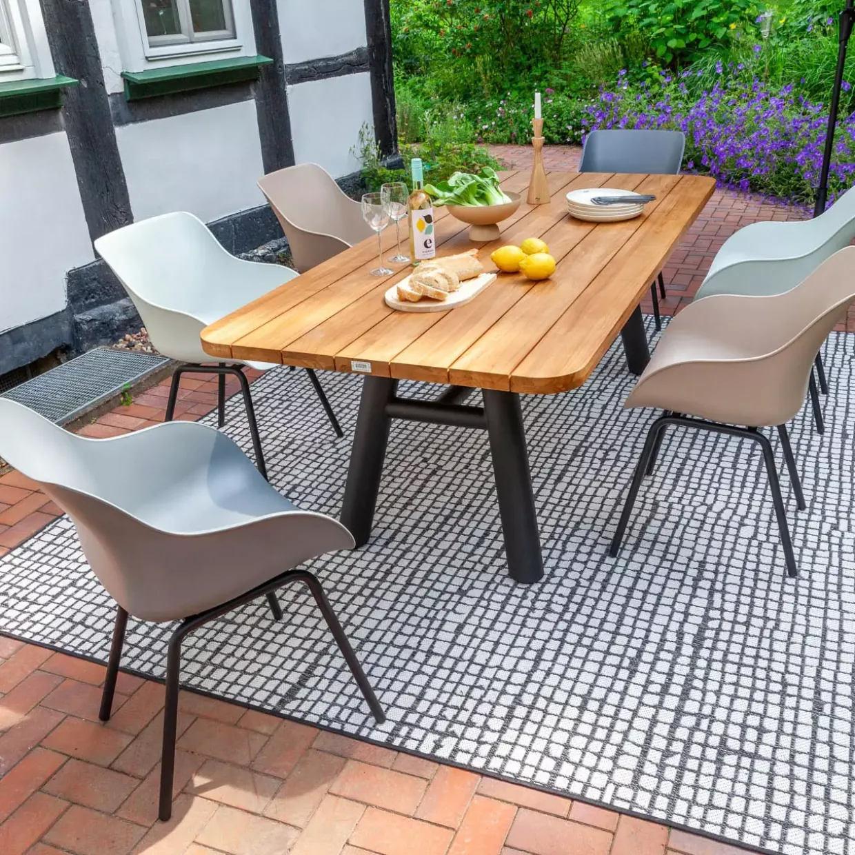 Hergestellt aus 100 % recyceltem Kunststoff, leistet der Gartenstuhl einen wertvollen Beitrag zum Umweltschutz. Der Einsatz von nachhaltigen Materialien zeigt, dass Komfort und ökologisches Bewusstsein Hand in Hand gehen können.