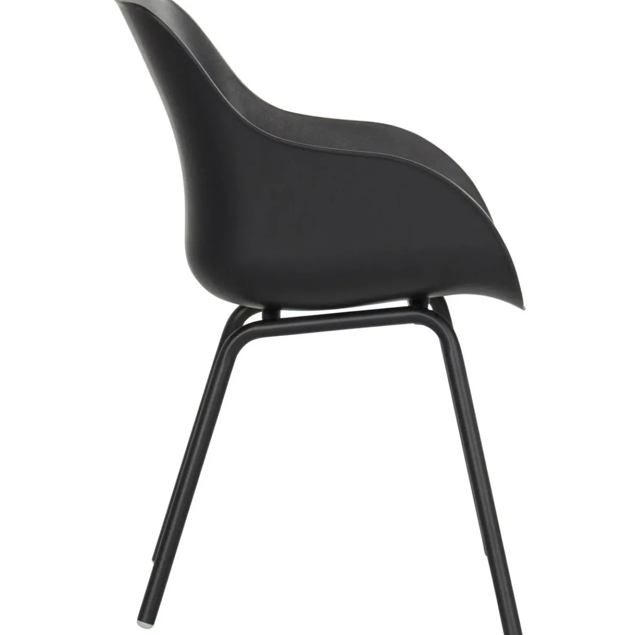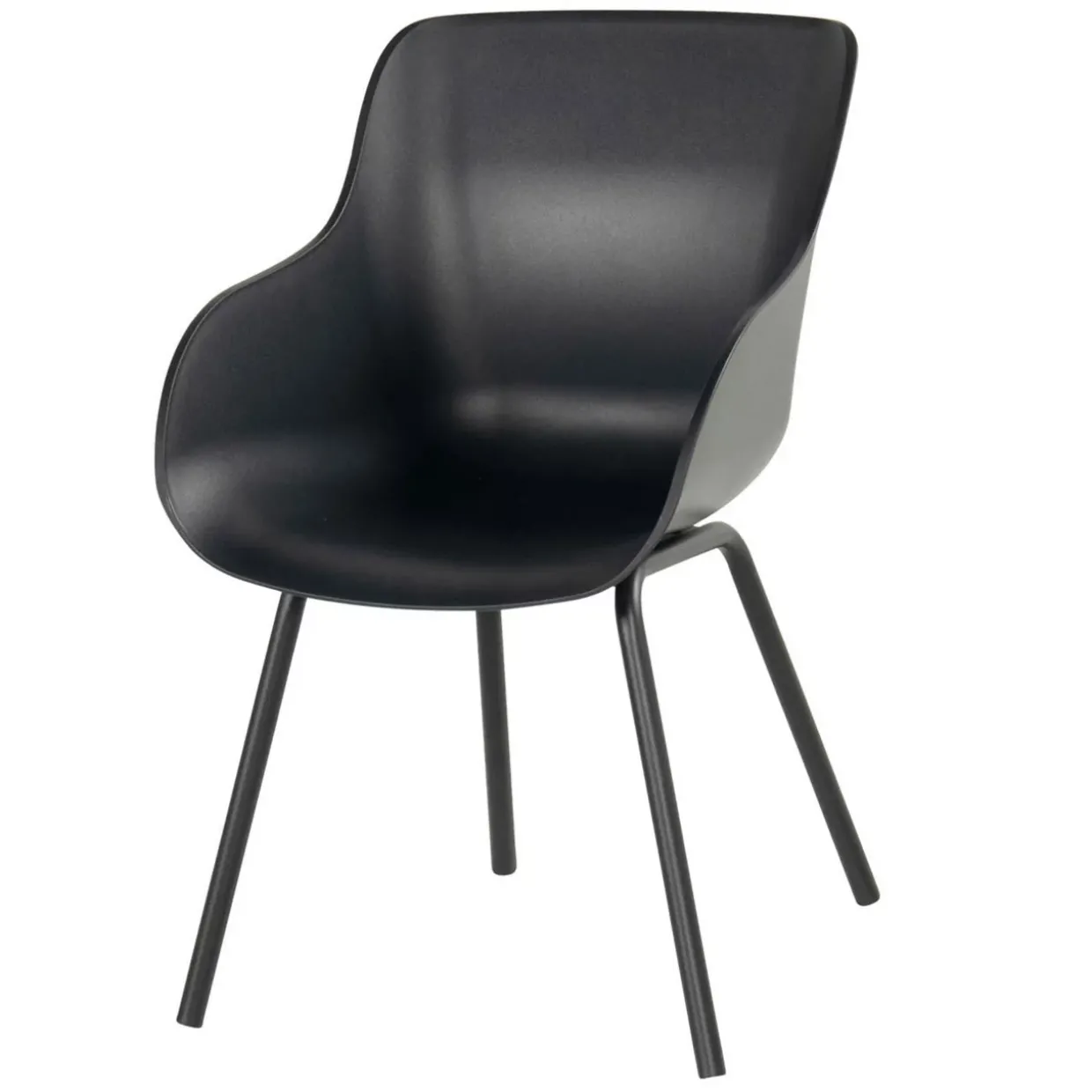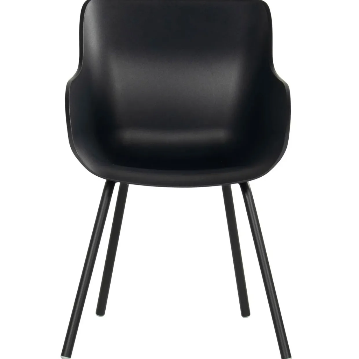 Recycelter Kunststoff steht im Mittelpunkt des Gartenstuhls Lieke, der mit modernem Stil und eleganter schwarzer Farbe überzeugt. Dieses Möbelstück besteht zu 100 % aus recyceltem Material und verbindet Nachhaltigkeit mit ansprechendem Design. Die Kombination aus Kunststoff und Aluminium sorgt für eine robuste und langlebige Konstruktion, die jedem Wetter standhält.