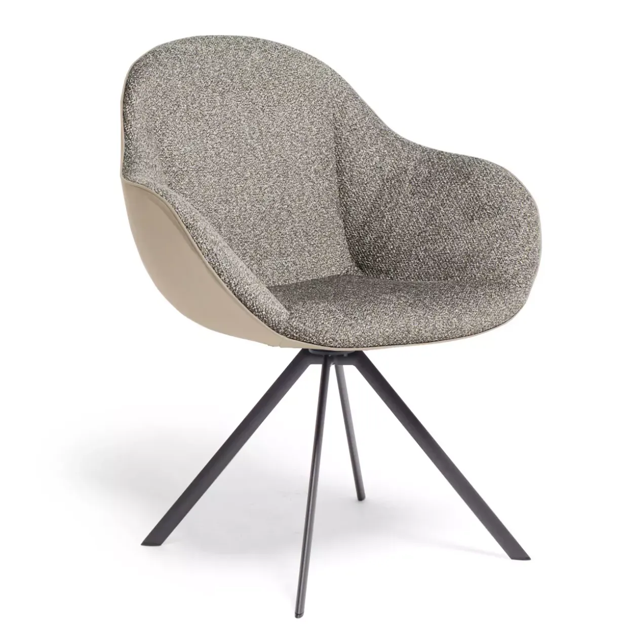 Ein besonderes Highlight ist das Stativgestell, das dem Sessel nicht nur Stabilität, sondern auch eine moderne Anmutung verleiht. Hergestellt aus hochwertigem Metall, garantiert es Langlebigkeit und Robustheit. Die Materialwahl aus Stoff und Metall sorgt zudem für ein angenehmes Sitzgefühl und eine ansprechende Optik.