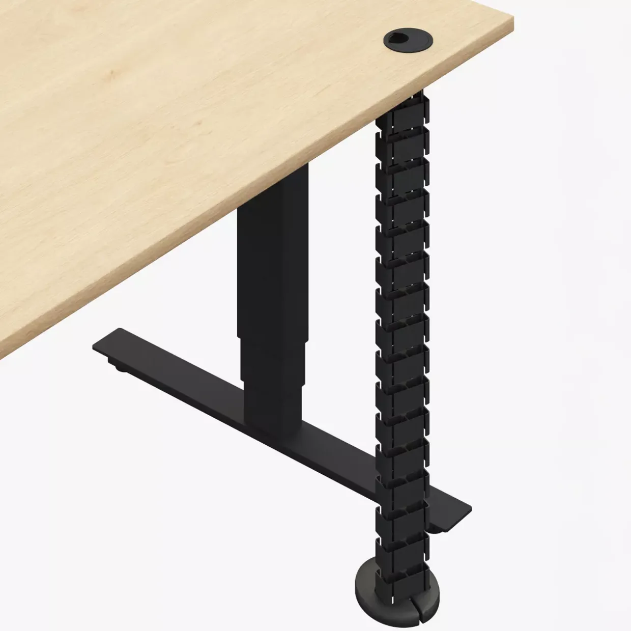 Ein besonderes Highlight stellt der Y-Fuß dar, der elektrisch höhenverstellbar ist. So lässt sich die Arbeitshöhe individuell und stufenlos von 70 cm bis 115 cm anpassen. Diese Flexibilität unterstützt eine gesunde Körperhaltung und fördert ergonomisches Arbeiten. Die melaminharzbeschichtete Oberfläche sorgt zudem dafür, dass der Schreibtisch robust und pflegeleicht ist.