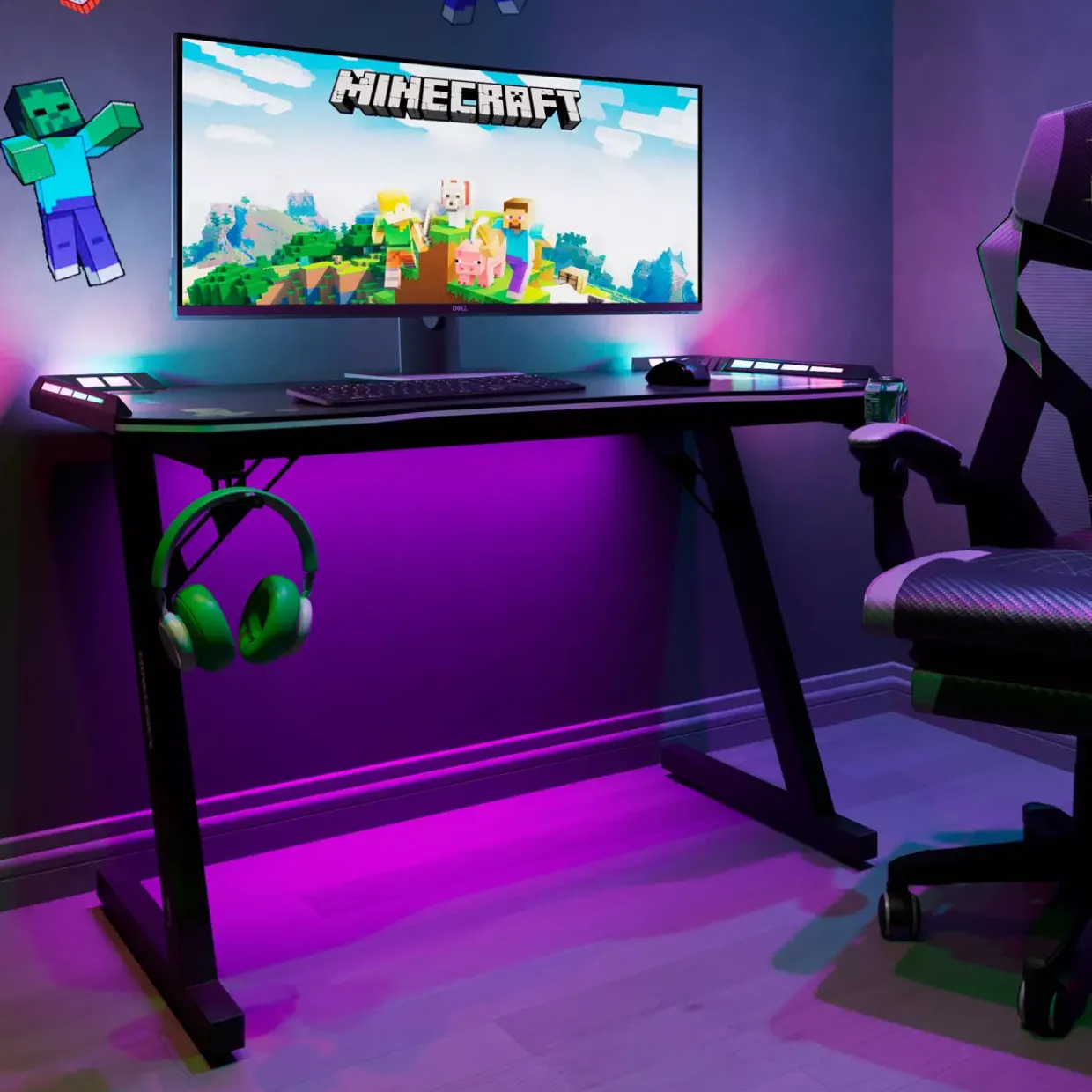 Dieser Schreibtisch ist die perfekte Ergänzung für jeden modernen Raum, sei es Ihr Home-Office oder das Gaming-Zimmer. Die klaren Linien und das zeitgemäße Design machen ihn zu einem Hingucker, der sich nahtlos in jede Einrichtung einfügt. Lassen Sie sich von der Funktionalität und Ästhetik dieses Möbelstücks begeistern, das speziell für Menschen entworfen wurde, die das Beste aus beiden Welten suchen – stilvolles Design und praktische Features. Machen Sie den Minecraft-Schreibtisch zu Ihrem neuen Arbeitsplatz und erleben Sie eine neue Dimension des Komforts und der Effizienz.