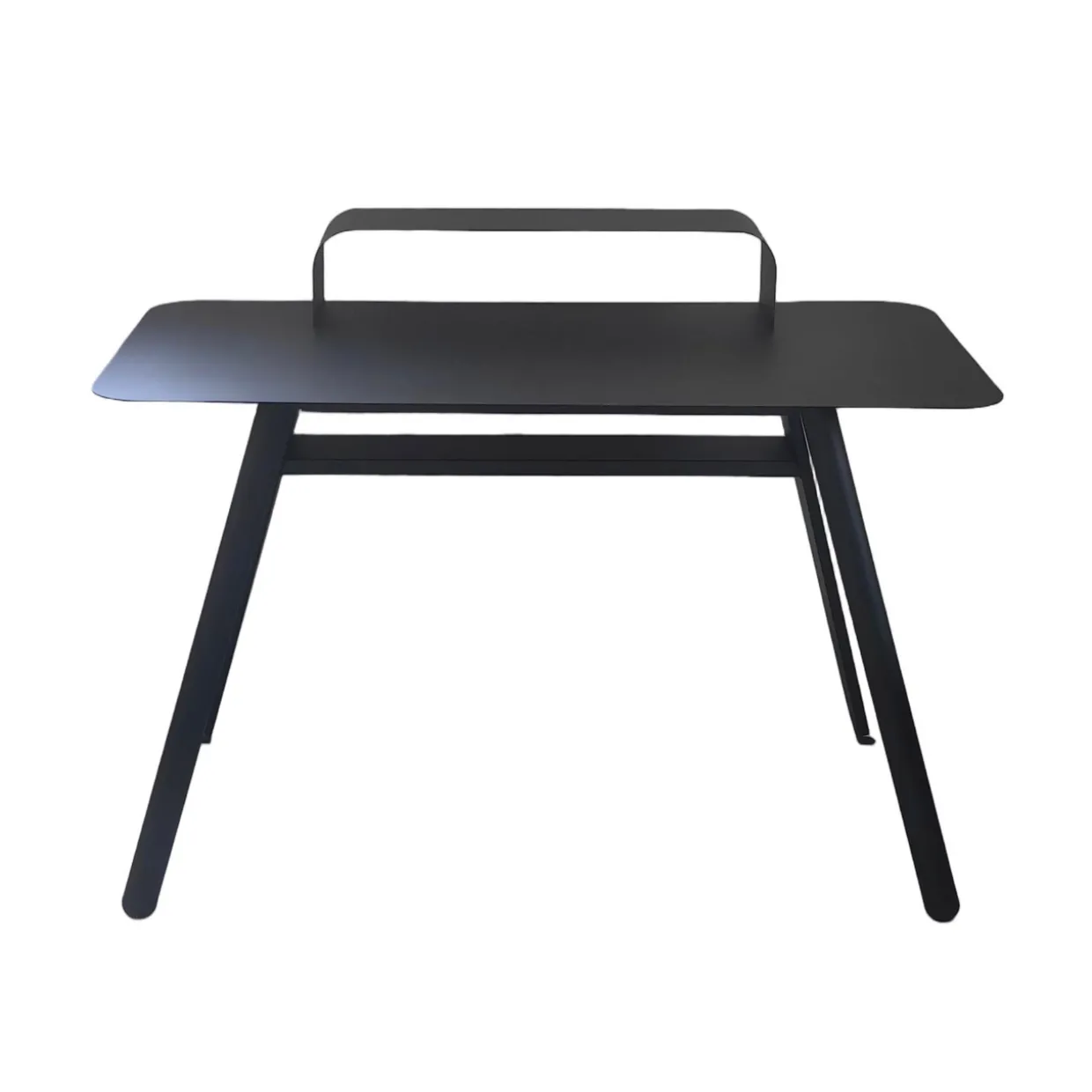schwarz; Schreibtisch; Stahl-Tischplatte mit Pulverbeschichtung, Stärke 1,80 mm; Metallbeine; Farbe Schwarz (DB-001)