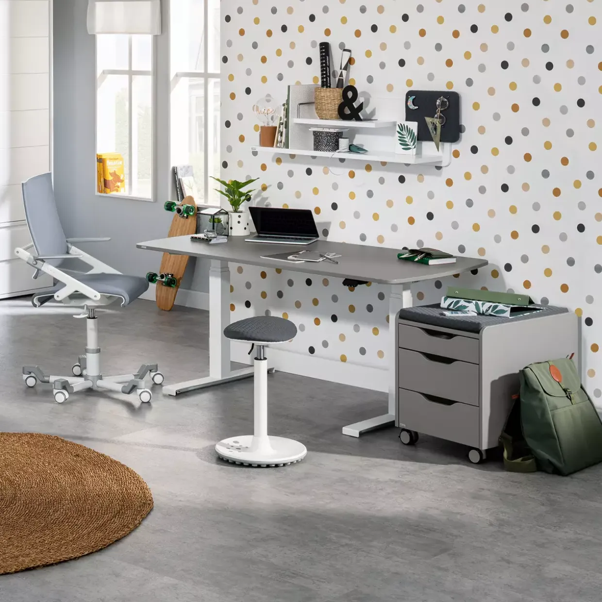Mit dem Modell Schoolworld haben Sie nicht nur einen funktionalen Arbeitsplatzbegleiter, sondern auch ein stilvolles Möbelstück, das durch seine dezente Farbpalette vielseitig kombinierbar ist. Der Einsatz von Polyester als Textilart gewährleistet eine angenehme Haptik und einfache Reinigung, was den Alltag erleichtert.