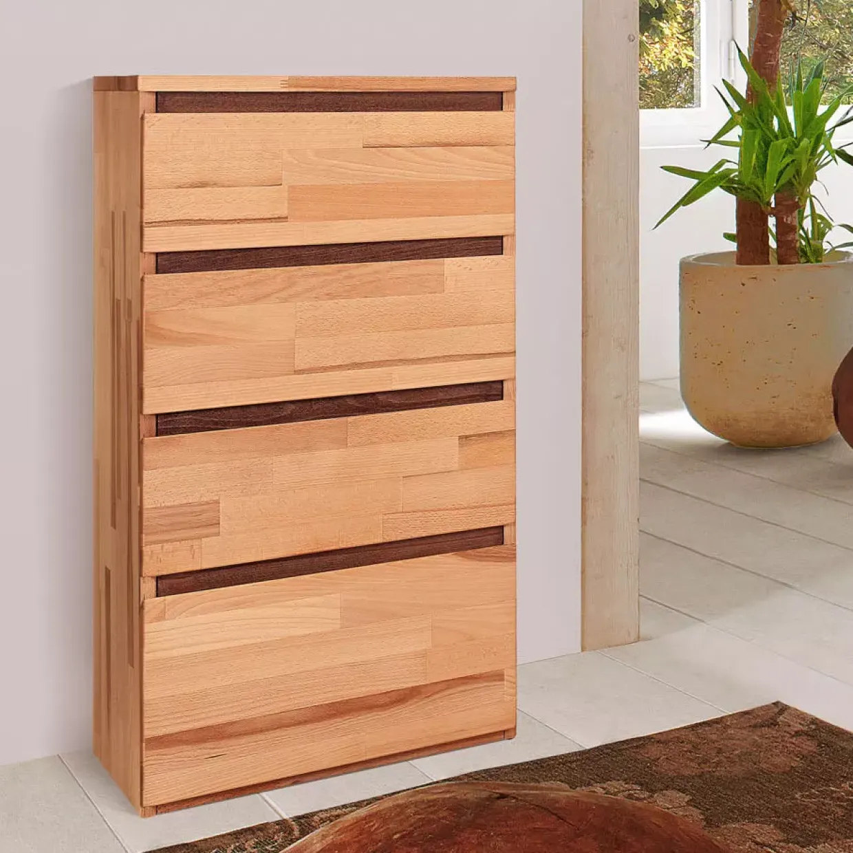Geölte Oberflächen bieten nicht nur einen eleganten Glanz, sondern schützen das Holz auch vor äußeren Einflüssen. Durch die Ölbehandlung bleibt die natürliche Schönheit des Materials erhalten und die Pflege des Schranks wird erleichtert. Das Holz fühlt sich dadurch angenehm an und strahlt eine besondere Wärme aus, die den Raum belebt.