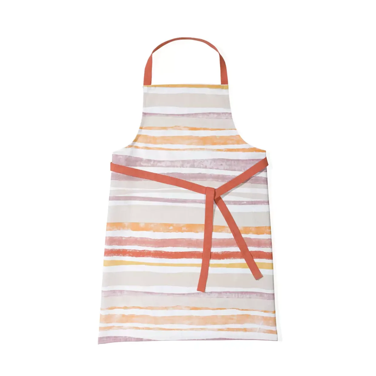 Ein Hauch von Modernität erfrischt Ihre Küche mit dieser farbenfrohen Schürze im Streifenmuster. Die harmonische Farbkomposition bringt Lebendigkeit und Freude in den Alltag und lässt Sie beim Kochen stilvoll aussehen. Gefertigt aus hochwertiger Baumwolle, bietet sie angenehmen Tragekomfort und Langlebigkeit, die Sie täglich genießen können.