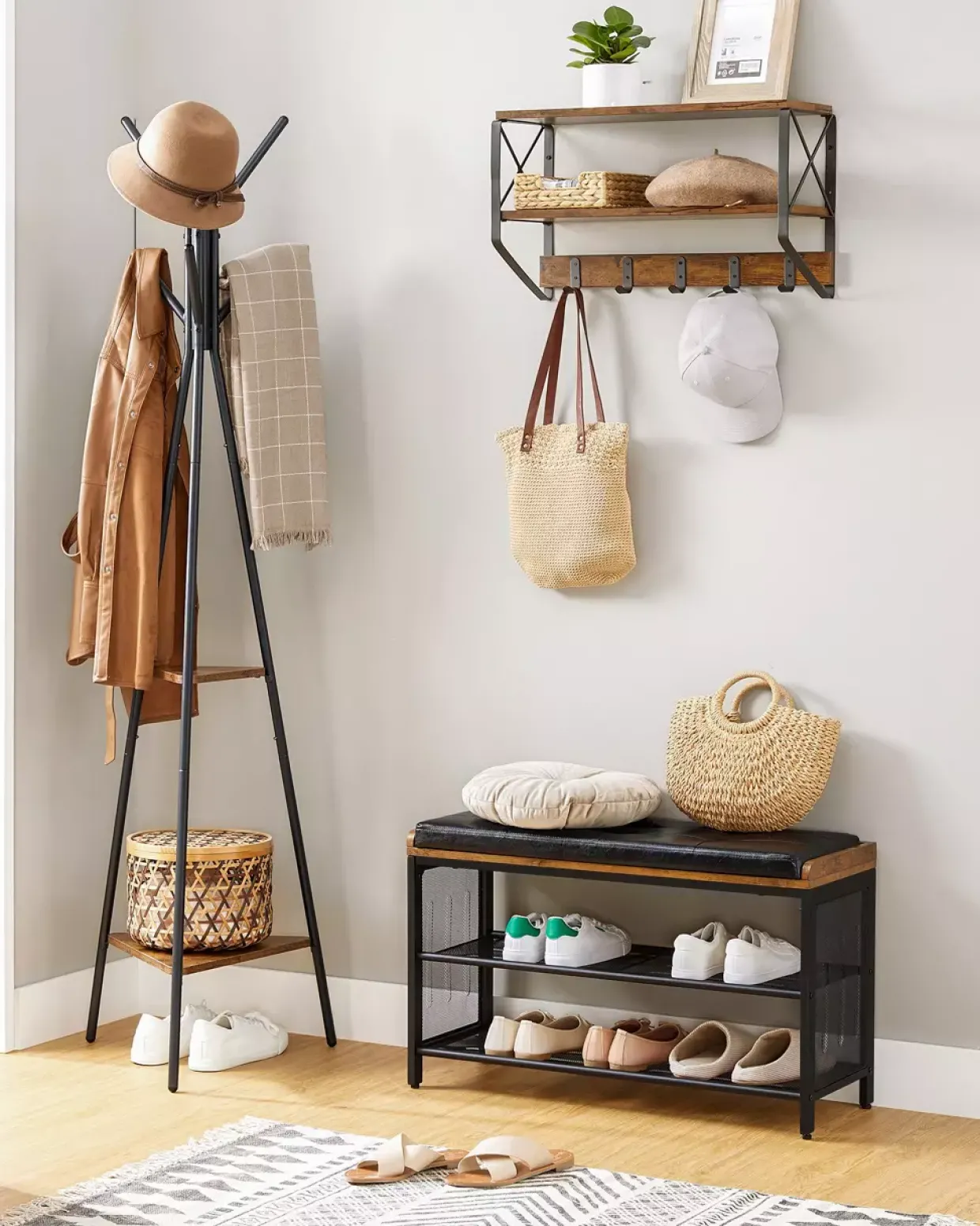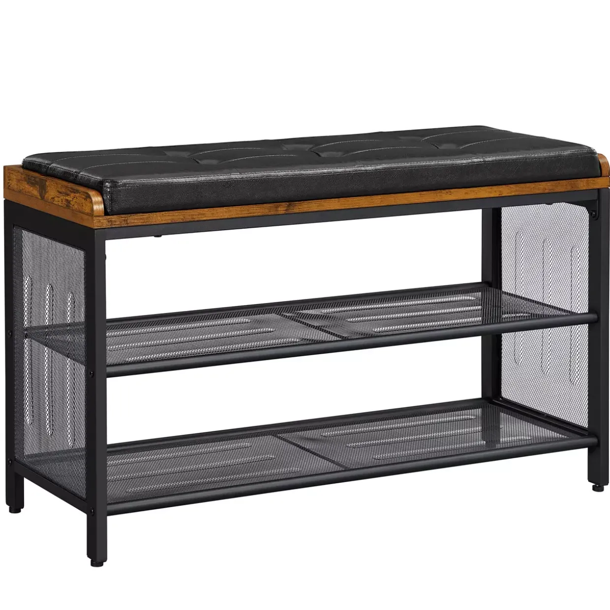 Metall, Leder und Holzwerkstoff vereinen sich in einem harmonischen Zusammenspiel, das die LBS75X Schuhbank zu einem unverzichtbaren Element in jedem Loft-Interieur macht. Die Kombination dieser Materialien verleiht dem Möbelstück nicht nur Stabilität, sondern auch eine ästhetische Vielseitigkeit, die sich in jede moderne Einrichtung nahtlos einfügt. Schwarz und Braun als Farbkomposition bieten eine elegante Optik, die sowohl zeitlos als auch aktuell wirkt. Diese Farbwahl ist ideal für Räume, die auf schlichte Eleganz und stilvolle Akzente setzen.Die LBS75X Schuhbank ist nicht nur ein stilvolles Möbelstück, sondern auch äußerst praktisch. Sie bietet Platz für mehrere Paar Schuhe und sorgt mit ihrer stabilen Konstruktion dafür, dass diese sicher verstaut sind. Die Sitzfläche aus Leder lädt dazu ein, sich bequem niederzulassen, während man sich die Schuhe anzieht oder ablegt.Durch das Design im Loft-Stil wird eine moderne, urbane Atmosphäre geschaffen, die den Raum aufwertet und gleichzeitig funktionale Aspekte nicht vernachlässigt. Diese Schuhbank ist somit eine hervorragende Wahl für alle, die Wert auf Qualität und Design legen und gleichzeitig den praktischen Nutzen nicht aus den Augen verlieren möchten.