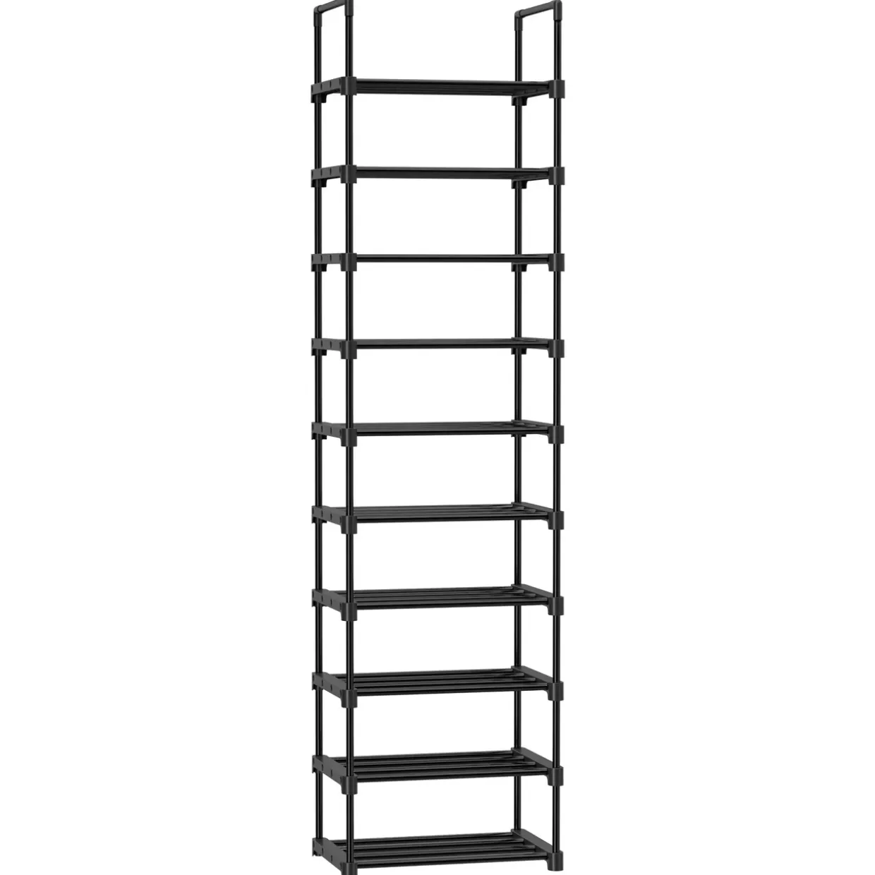 Entwickelt für den anspruchsvollen Nutzer, bietet dieses Schuhregal nicht nur praktischen Stauraum, sondern auch eine clevere Organisation Ihrer Schuhe. Die Verarbeitung aus Metall verleiht dem Regal eine robuste Struktur, während der Einsatz von Kunststoff die Flexibilität und das Gewicht verringert, was den Transport und die Handhabung erleichtert.