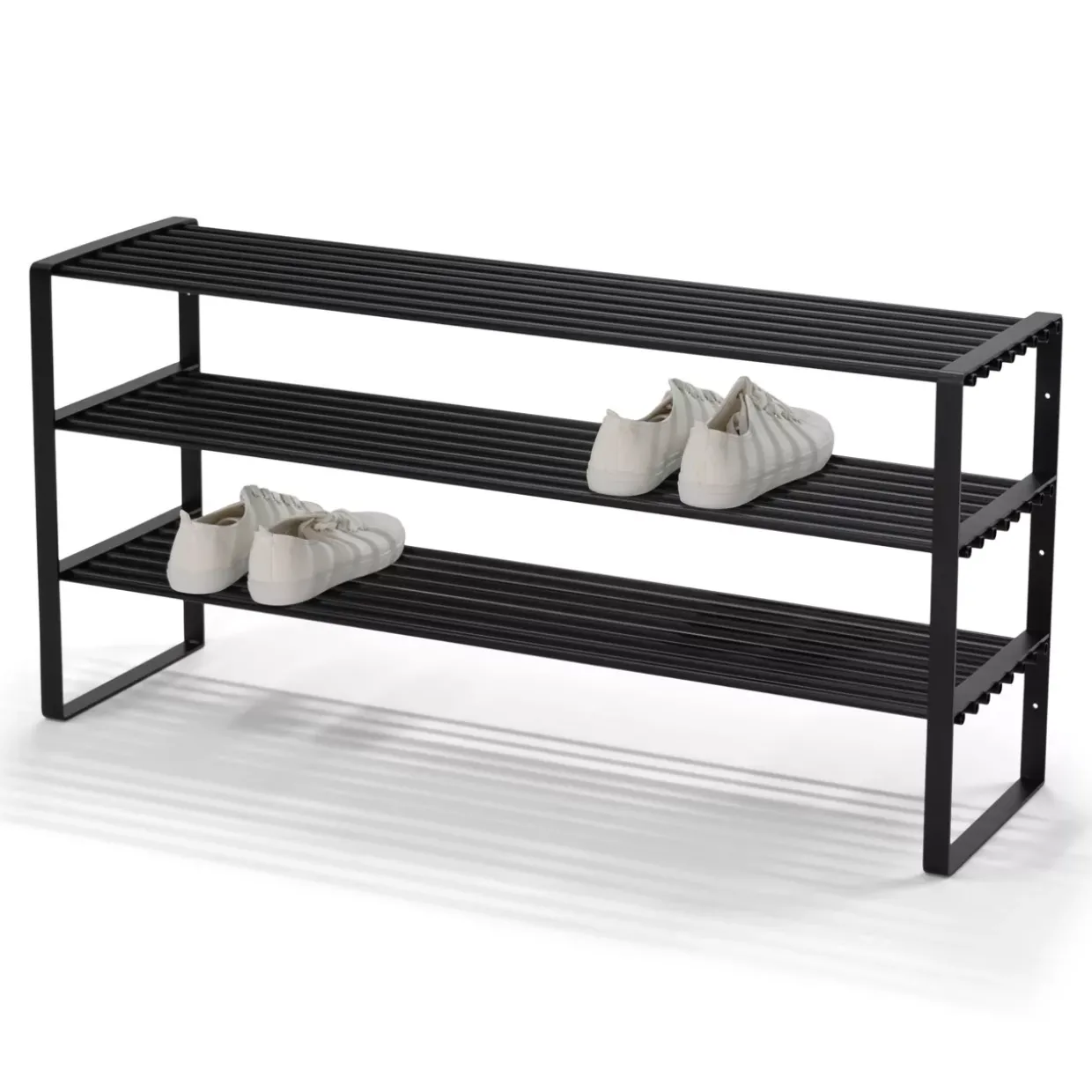 Gefertigt aus hochwertigem Stahl, bietet das REX Schuhregal eine robuste und langlebige Konstruktion, die den täglichen Anforderungen standhält. Die Verwendung von Metall verleiht dem Regal nicht nur Stabilität, sondern auch eine edle Optik, die durch die schwarze Lackierung zusätzlich hervorgehoben wird. Ob Sie Sneakers, Stiefel oder elegante Lederschuhe unterbringen möchten, das REX Schuhregal bietet ausreichend Platz und hält Ihre Schuhe stets griffbereit. So bleibt Ihr Zuhause aufgeräumt und Ihre Lieblingsschuhe immer in Reichweite.