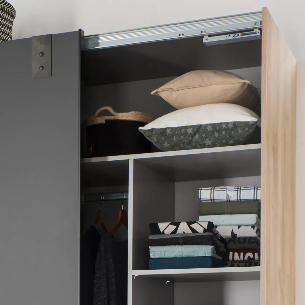 Nicht nur optisch ansprechend, sondern auch funktional durchdacht, bietet dieser Schrank viel Stauraum für Kleidung und Accessoires. Das durchdachte Design erleichtert die Organisation und schafft Ordnung mit Stil. Der Cardiff Schrank fügt sich nahtlos in moderne Wohnkonzepte ein und ergänzt jede Einrichtung mit seinem zeitlosen Charme.