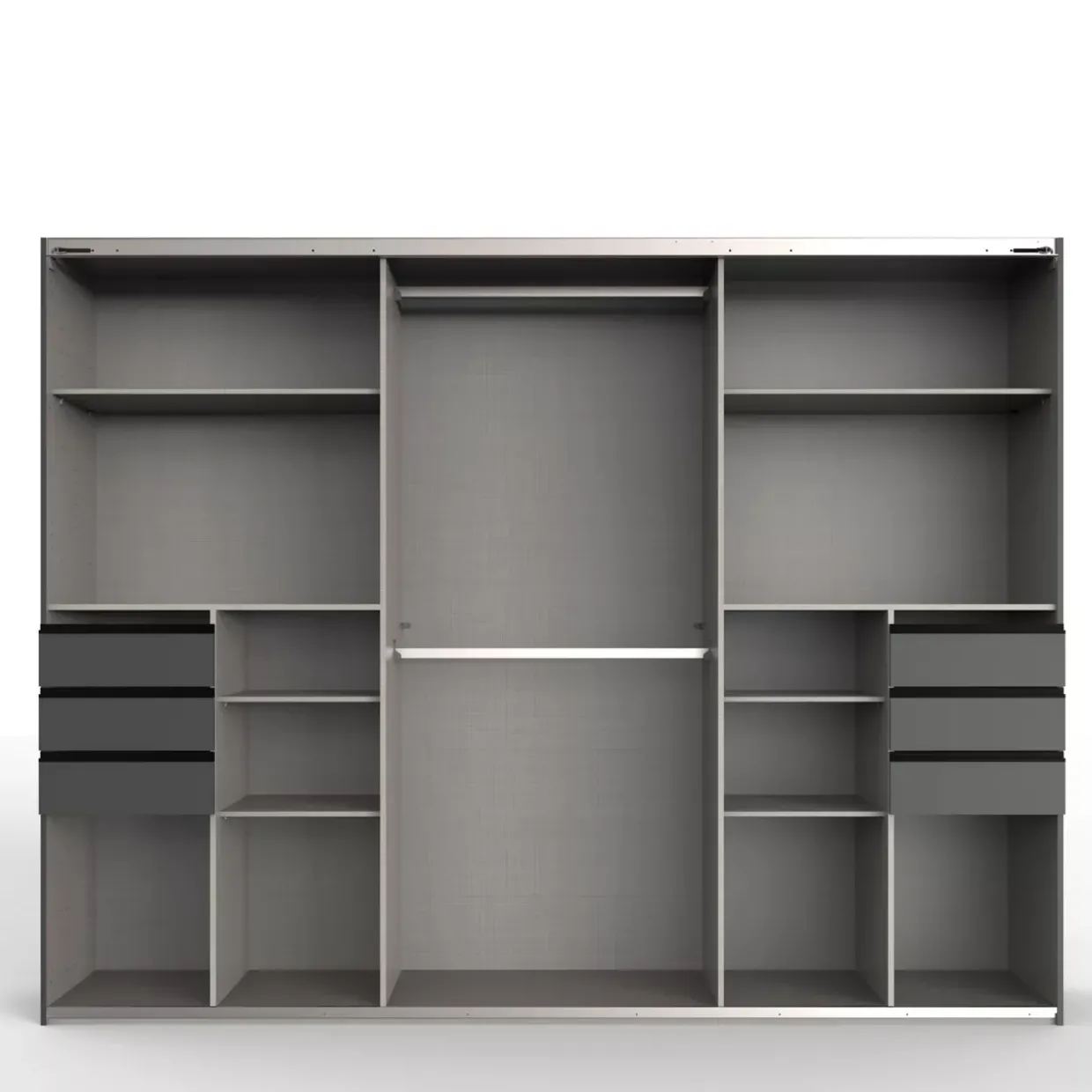 Anzahl: Kleiderstangen 2 / Einlegeböden 8 / Türen 3 / Schubkasten 6