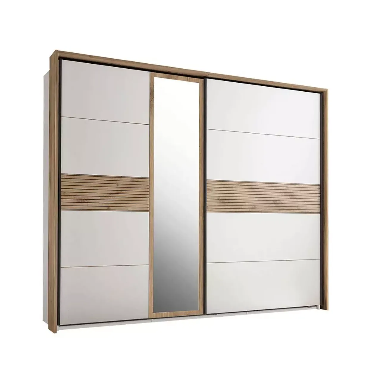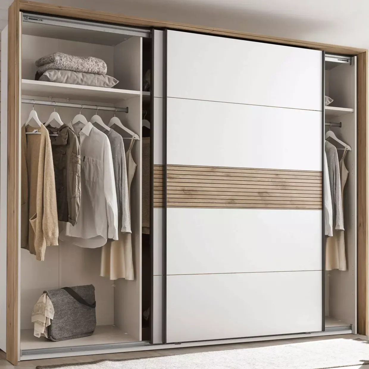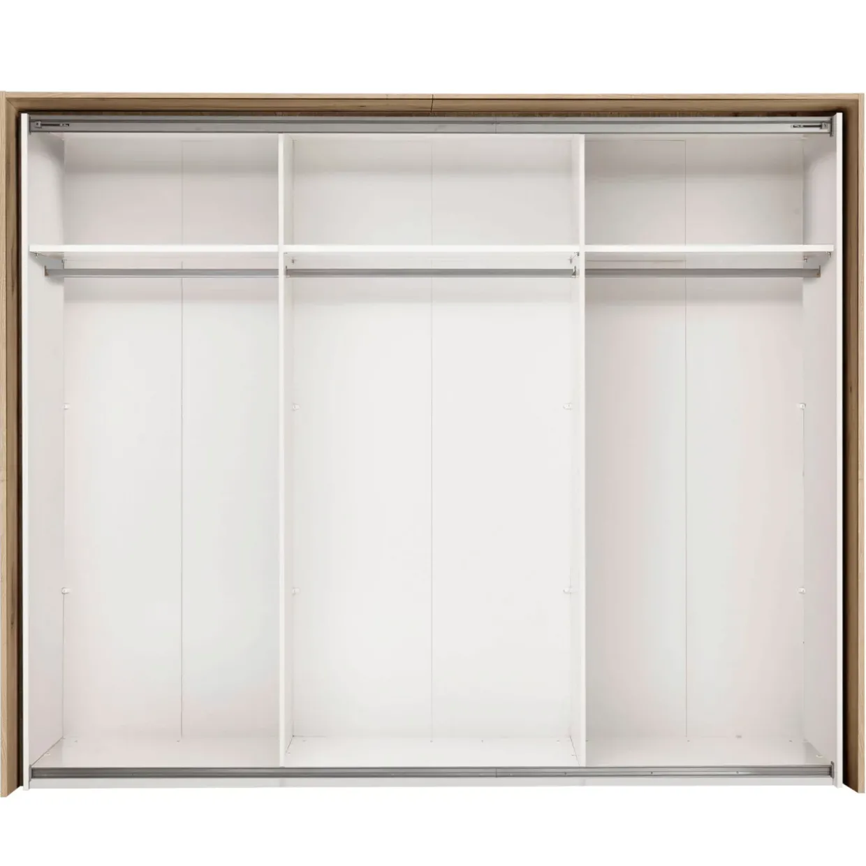 Vielseitigkeit im Inneren ermöglicht eine flexible Organisation Ihrer Kleidung und Accessoires. Durchdachte Aufteilung und ausreichend Stauraum machen den Schwebetürenschrank zu einem praktischen Begleiter im Alltag. Sein durchdachtes Design und die hohe Funktionalität bieten eine hervorragende Lösung für die Aufbewahrung, während die elegante Optik für eine angenehme Wohnatmosphäre sorgt.