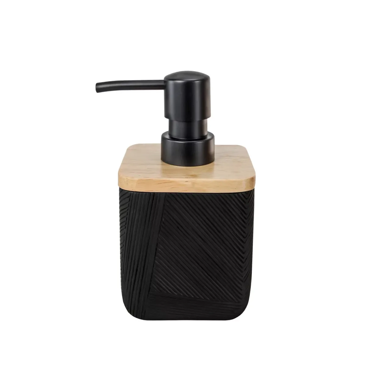 Die innovative Kombination aus Holz und Kunststoff sorgt nicht nur für einen stilvollen Look, sondern auch für eine einfache Pflege und Reinigung. Der Seifenspender ist durchdacht gestaltet, um sowohl optisch ansprechend als auch praktisch zu sein, was ihn zu einer idealen Wahl für anspruchsvolle Badezimmer macht.