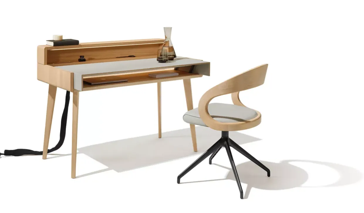 Besonderen Komfort bietet der integrierte Kabelauslass, der für Ordnung auf der Arbeitsfläche sorgt. Gleichzeitig ermöglicht die eingebaute Stecker- und USB-Einheit eine praktische Nutzung moderner Technologien, ohne dass zusätzliche Kabelsalate entstehen.