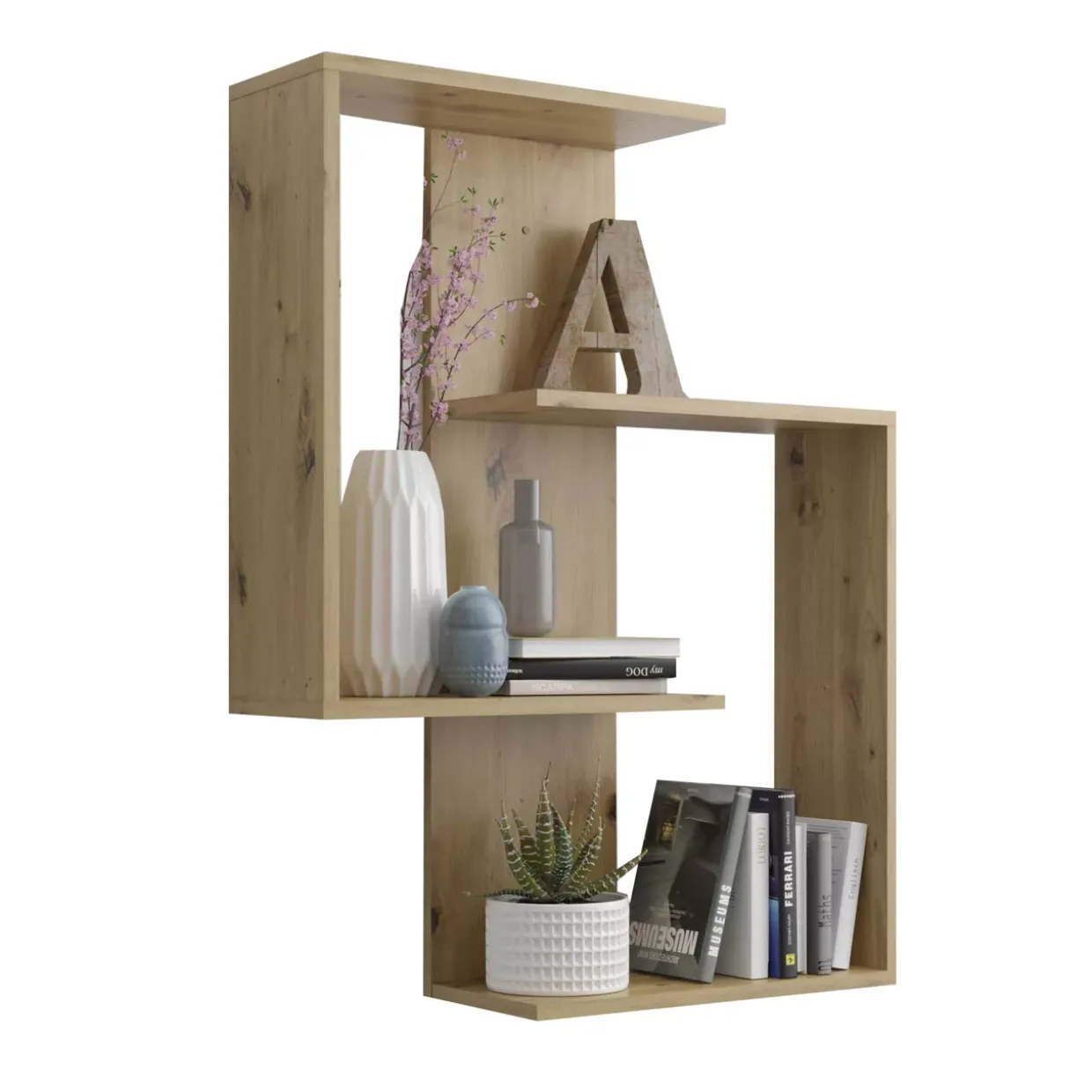 Das Wandregal Kyle ist ein vielseitiges Möbelstück, das sich nahtlos in verschiedenste Wohnkonzepte integrieren lässt. Seine robuste Konstruktion aus hochwertigem Holz sorgt für Langlebigkeit und Stabilität, während das zeitlose Design es zu einem wahren Blickfang macht. Egal, ob Sie Bücher, Dekorationsobjekte oder Pflanzen stilvoll präsentieren möchten, das Regal bietet ausreichend Platz und trägt dazu bei, Ihr Zuhause aufgeräumt und organisiert zu halten. Die Artisan Eiche Nachbildung verleiht dem Regal eine natürliche Textur und einen angenehmen Farbton, der sich harmonisch in Ihr Interieur einfügt.