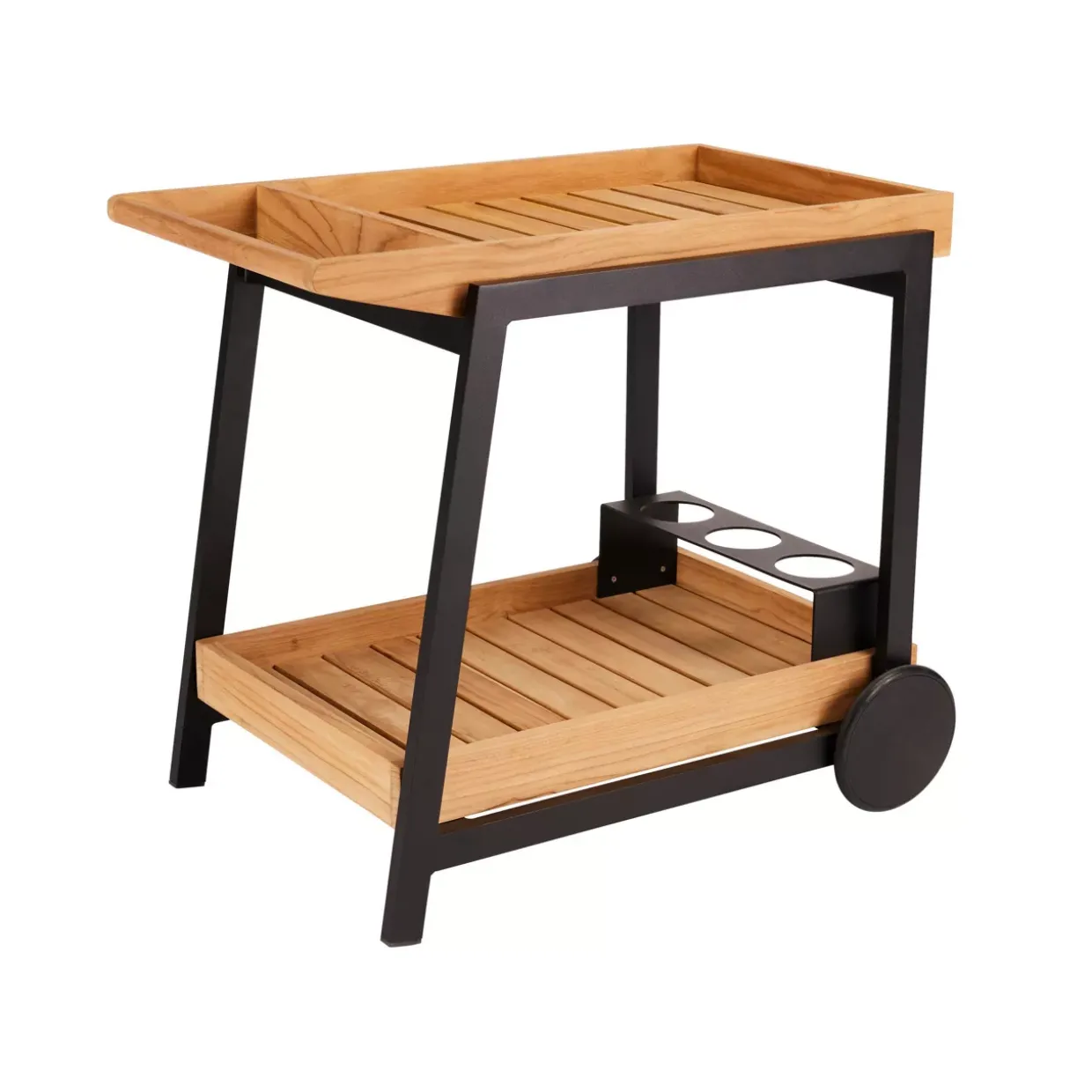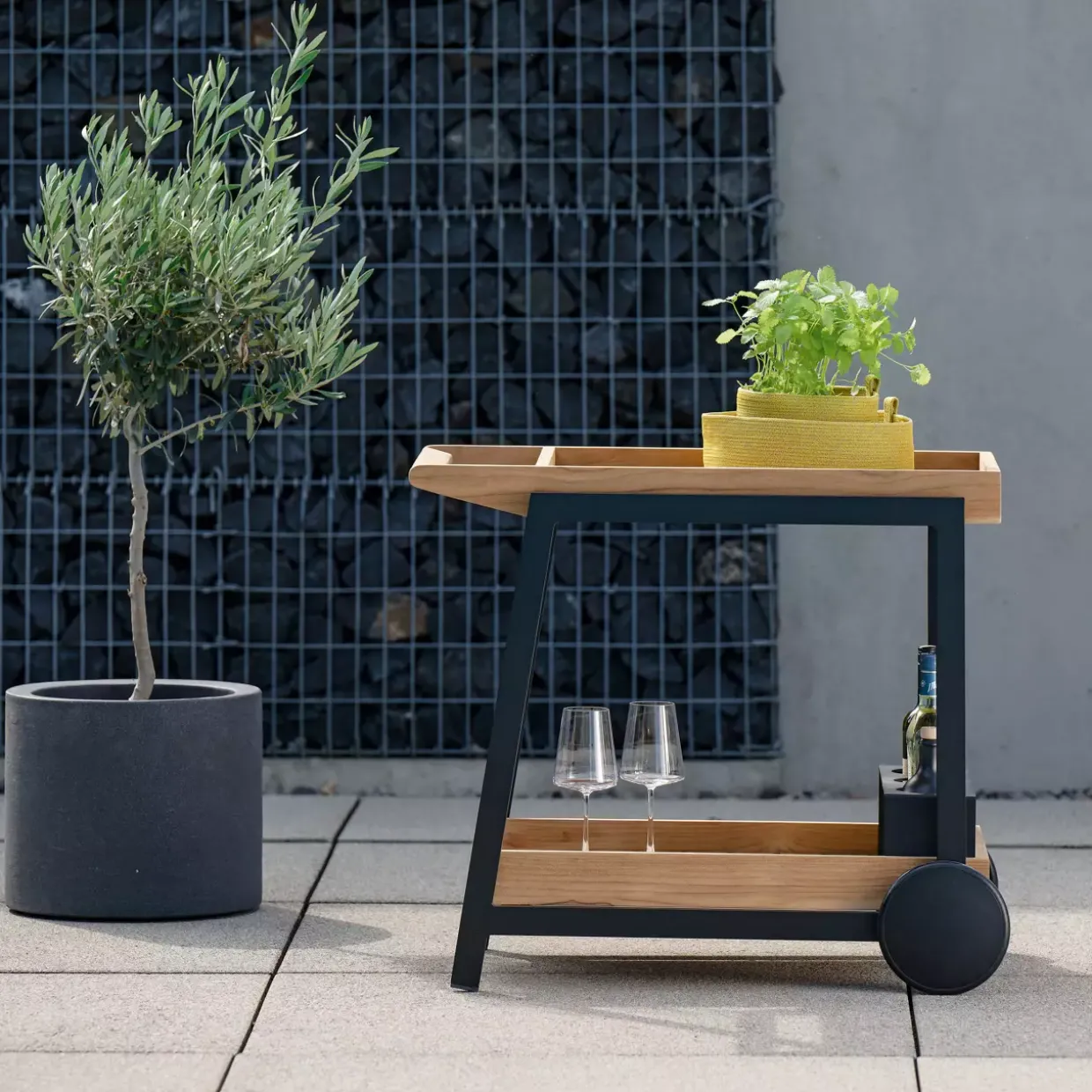 Für diejenigen, die Wert auf Design und Funktionalität legen, stellt der Frido die ideale Lösung dar. Die Kombination aus Metall und Teakholz schafft ein zeitloses Erscheinungsbild, das sowohl in modernen als auch in klassischen Einrichtungen seine Wirkung entfaltet. Wenn Sie auf der Suche nach einem Servierwagen sind, der nicht nur funktional, sondern auch ein ästhetischer Blickfang ist, bietet sich Frido als passendes Stück an. Genießen Sie die Sommerzeit mit einem Hauch von Eleganz und Praktikabilität.