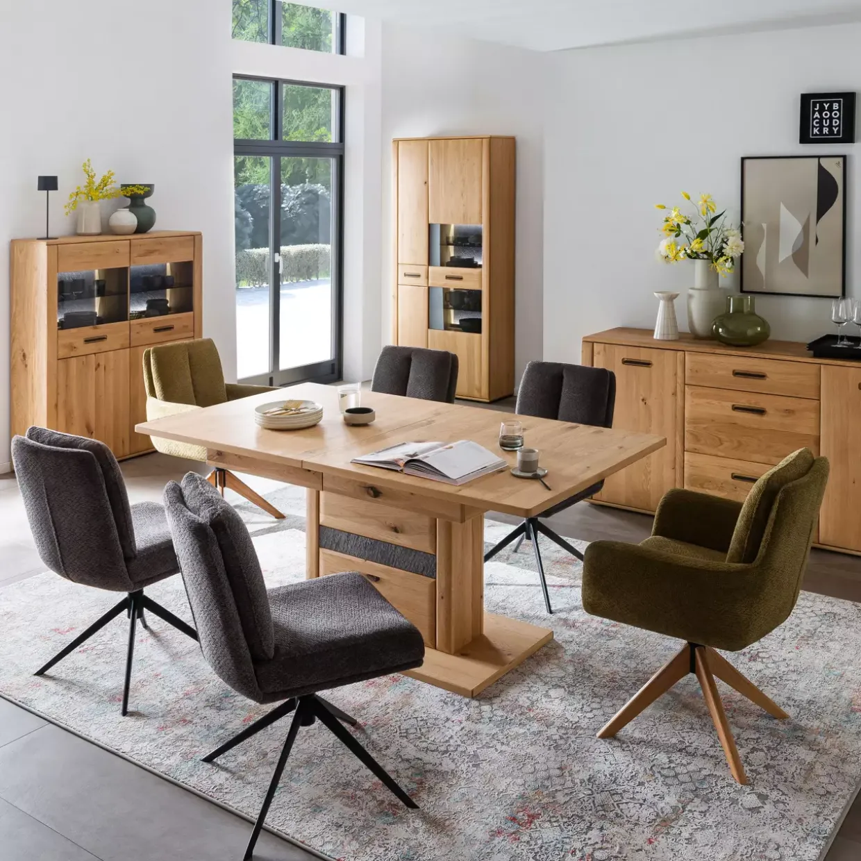 | Color | Bezug Strukturgewebe olive / Gestell Eiche massiv |