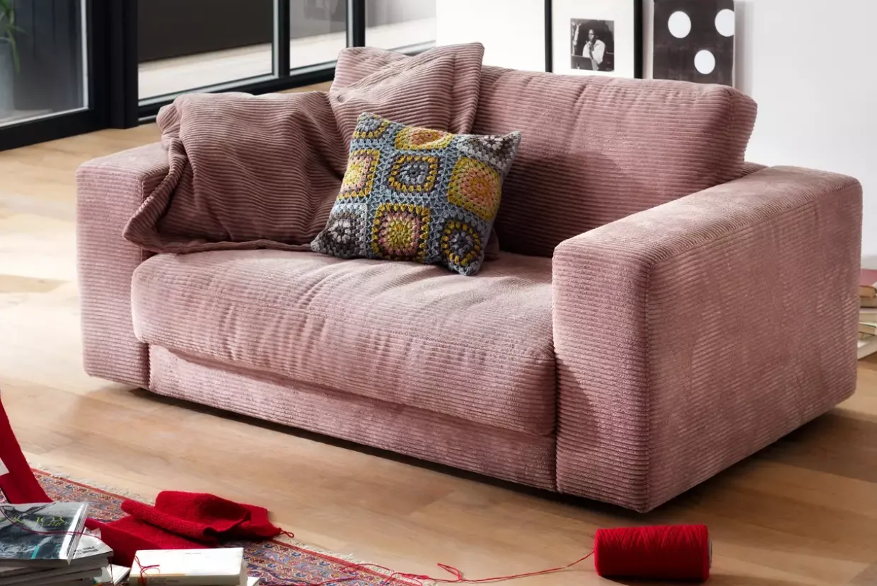 Ein sanfter Hauch von Rosa ziert diesen modernen Sessel, der sich wunderbar in jedes stilvolle Zuhause einfügt. Die Kombination aus hochwertigem Cordstoff und einer besonders legeren Polsterung macht ihn zu einem perfekten Ort der Entspannung. Die lose Sitz- und Rückenkissen sind mit PUR-Schaum gefüllt, was für höchsten Komfort sorgt.