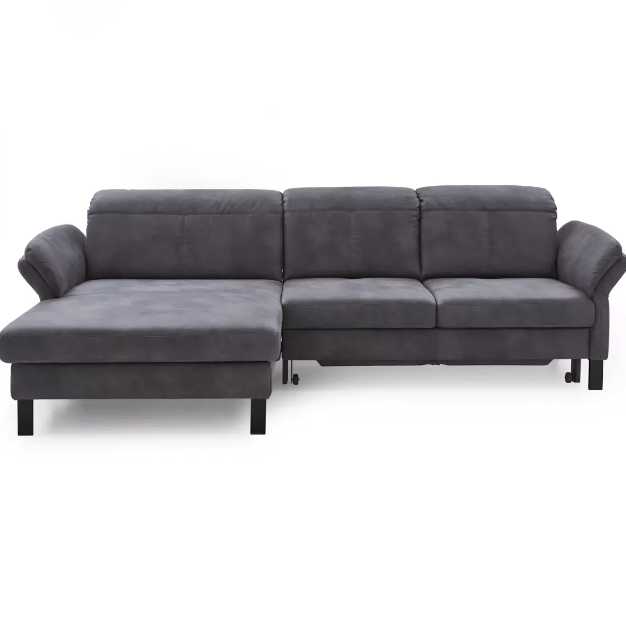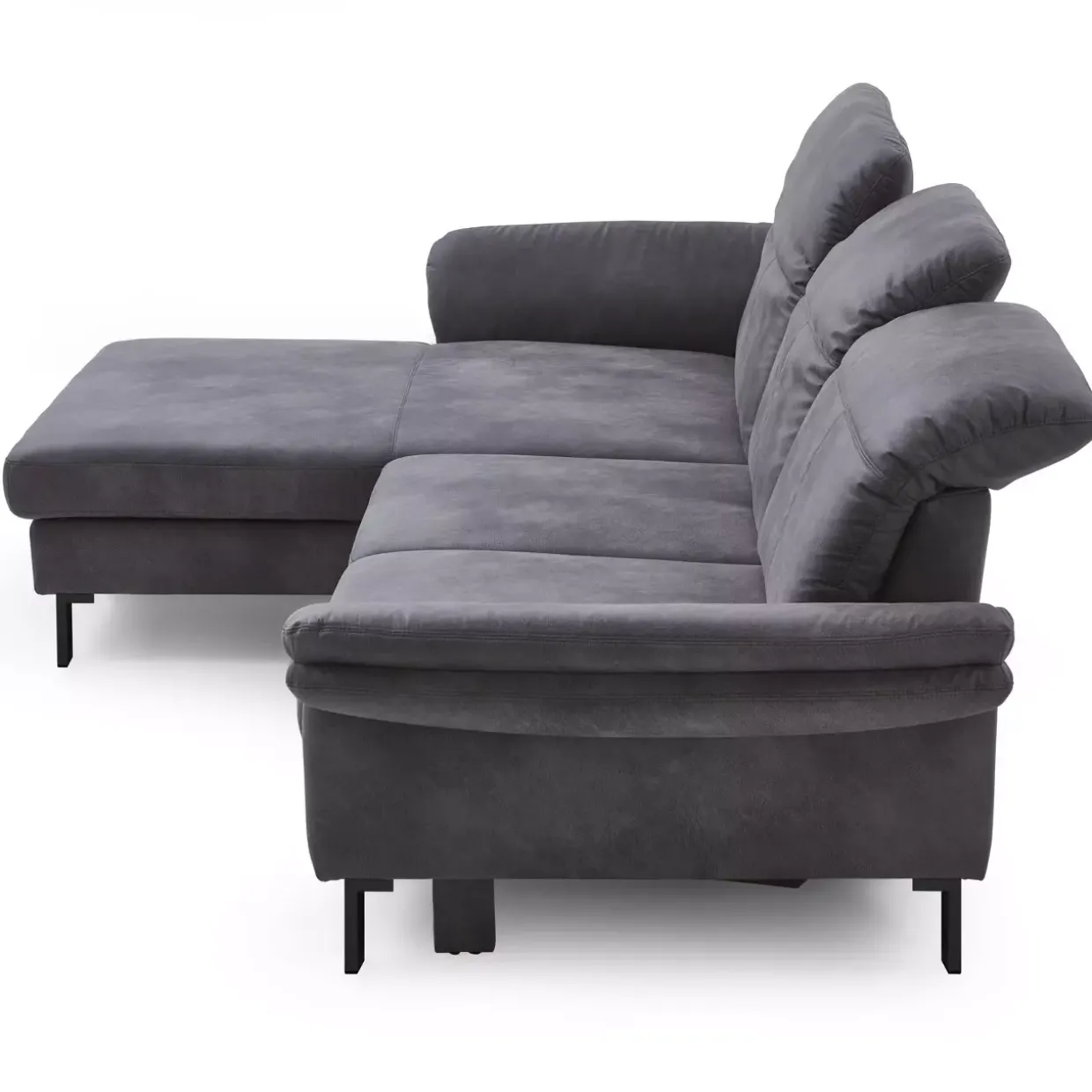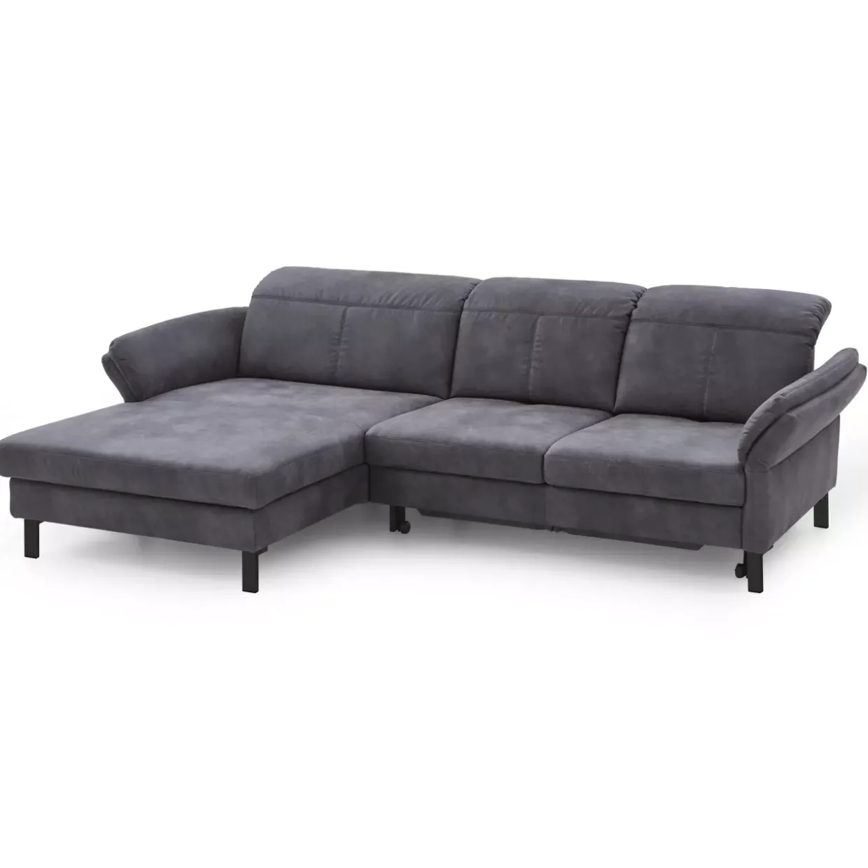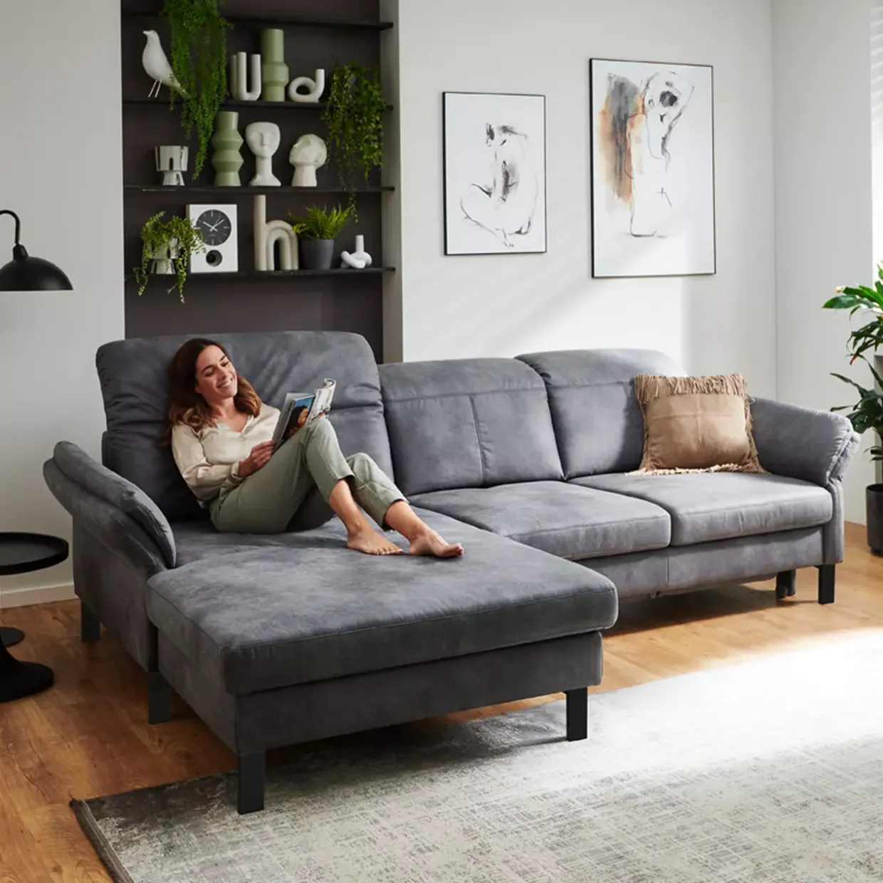 Entdecken Sie die perfekte Kombination aus Komfort und Funktionalität mit der Shelly Polstergarnitur. Die Armteilverstellung bietet Ihnen die Flexibilität, Ihren Sitzkomfort individuell anzupassen. Stilvoll in konventionellem Design gehalten, harmoniert diese Garnitur ideal mit modernen und klassischen Einrichtungen. Die Farben Savanna Grey und Schwarz Matt verleihen dem Wohnzimmer eine zeitlose Eleganz.Gefertigt aus hochwertigem Stoff und robustem Metall, vereint die Garnitur Langlebigkeit und Ästhetik. Die Bettfunktion als Querschläfer ermöglicht es, im Handumdrehen einen gemütlichen Schlafplatz zu schaffen, während die Kopfteilverstellung weitere individuelle Komfortoptionen bietet. Ein Highlight ist der Longchair maxi, der nicht nur großzügigen Stauraum bietet, sondern auch mit einer manuell einstellbaren Kopfteilverstellung ausgestattet ist.Die Polsterung aus Federkern und PUR-Schaum verspricht einen angenehmen Sitzkomfort, unterstützt durch feste Rückenkissen und eine legere Polsterung. Die echten Bezüge auf der Liegefläche und dem Rücken runden das durchdachte Design ab und sorgen für eine einheitliche Optik. Eine Polstergarnitur, die durch durchdachte Details und hochwertige Materialien überzeugt, bereichert jeden Wohnraum um ein stilvolles und funktionales Möbelstück. Genießen Sie die vielfältigen Möglichkeiten, die Ihnen diese Garnitur bietet.