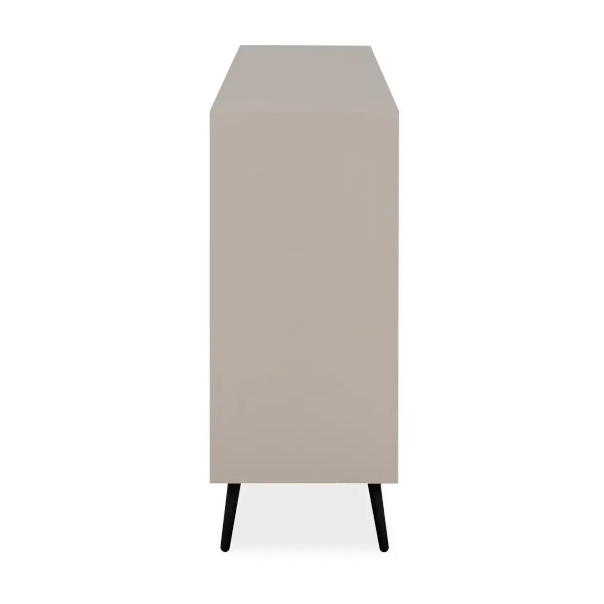 Das Design des Sideboards vereint Form und Funktion auf raffinierte Weise. Dank der Falttüren eignet es sich hervorragend für Räume, in denen Platzersparnis eine Rolle spielt, während die klaren Linien und das schlichte Erscheinungsbild für eine aufgeräumte Optik sorgen.