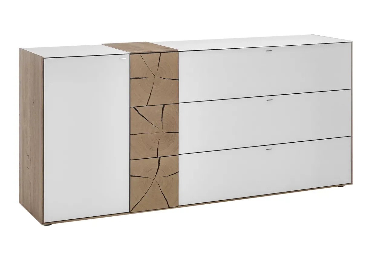 Platz für Ihre persönlichen Schätze bieten die vielfältigen Aufbewahrungsmöglichkeiten hinter den Türen und in den Schubladen des Sideboards. Die Kombination der Materialien und die sorgfältige Verarbeitung stellen sicher, dass dieses Möbelstück nicht nur optisch überzeugt, sondern auch in der Nutzung lange Freude bereitet. Caya bietet Ihnen mit diesem Sideboard ein Stück moderner Wohnkultur, das Eleganz und Funktionalität perfekt vereint.