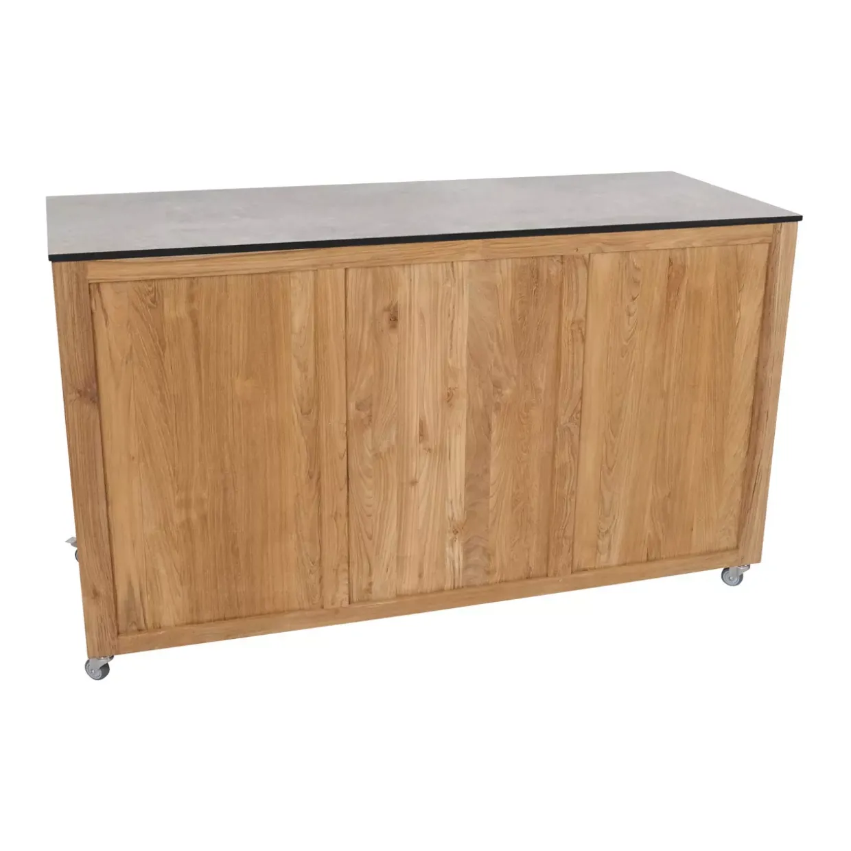 Old Teak strahlt Wärme und Natürlichkeit aus und macht das Sideboard Elma zu einem besonderen Möbelstück. Die Kombination aus Holz und Stein verleiht diesem Sideboard nicht nur Stabilität, sondern auch eine ansprechende Ästhetik. Ein Highlight ist die Arbeitsplatte aus Silverstar Quartz, die nicht nur funktional, sondern auch ein echter Blickfang ist.