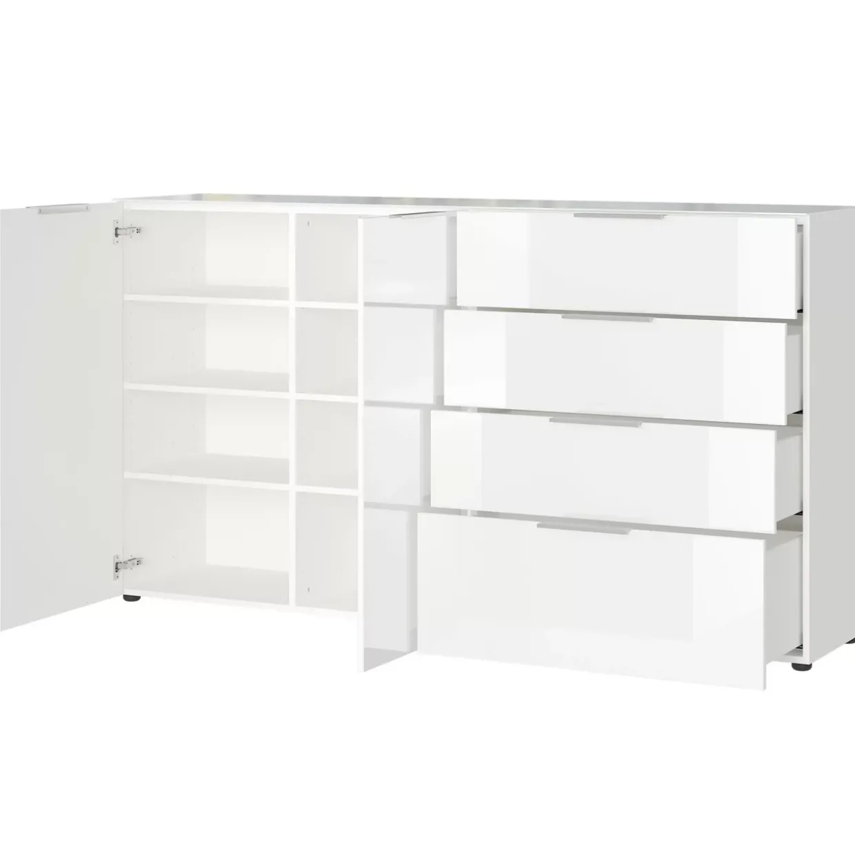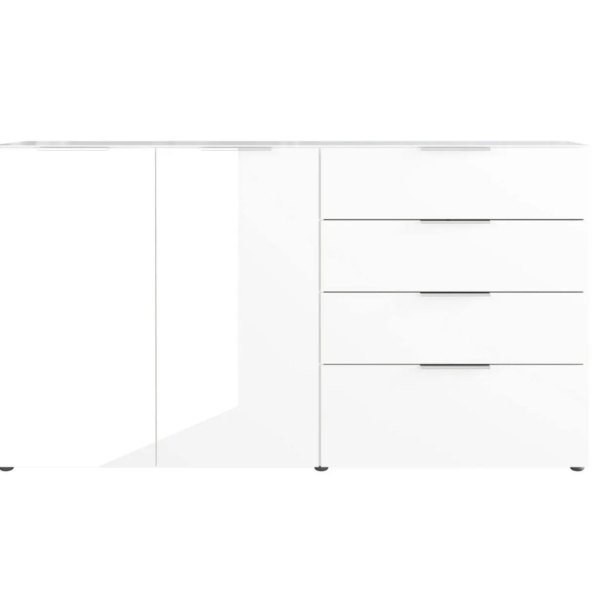 Mit vier Schubladen und zwei gedämpften Drehtüren ausgestattet, hält das GW-Oakland reichlich Stauraum bereit. Hinter den Türen verbirgt sich eine Mittelseite mit sechs verstellbaren Einlegeböden, die flexible Aufbewahrungslösungen ermöglichen. Die Schubladen sind mit einer Soft-Close-Technik versehen, die sanftes und geräuschloses Schließen garantiert.