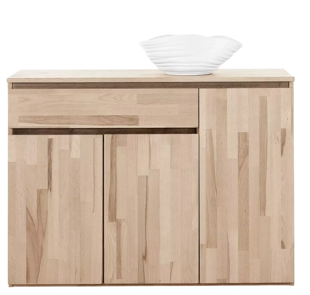 Ein modernes Design trifft auf natürliche Schönheit: Das Sideboard aus geölter Kernbuche ist nicht nur ein funktionales Möbelstück, sondern auch ein stilvolles Element für Ihr Zuhause. Mit seinen drei Drehtüren bietet es ausreichend Stauraum, um Ihre Wohnaccessoires geordnet und diskret zu verstauen.