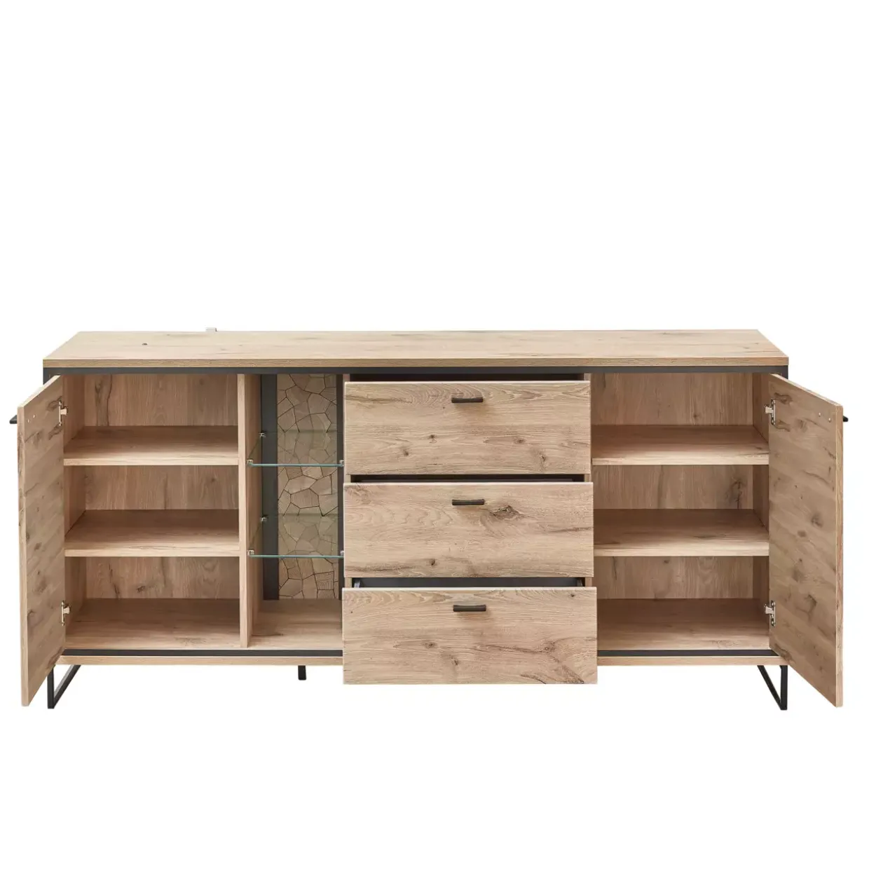 | Color | Oak Nature Nachbildung / Absetzung schwarz matt / Füße Schwarz matt / Griffe Schwarz matt |