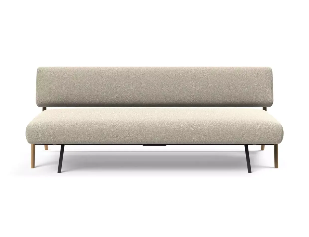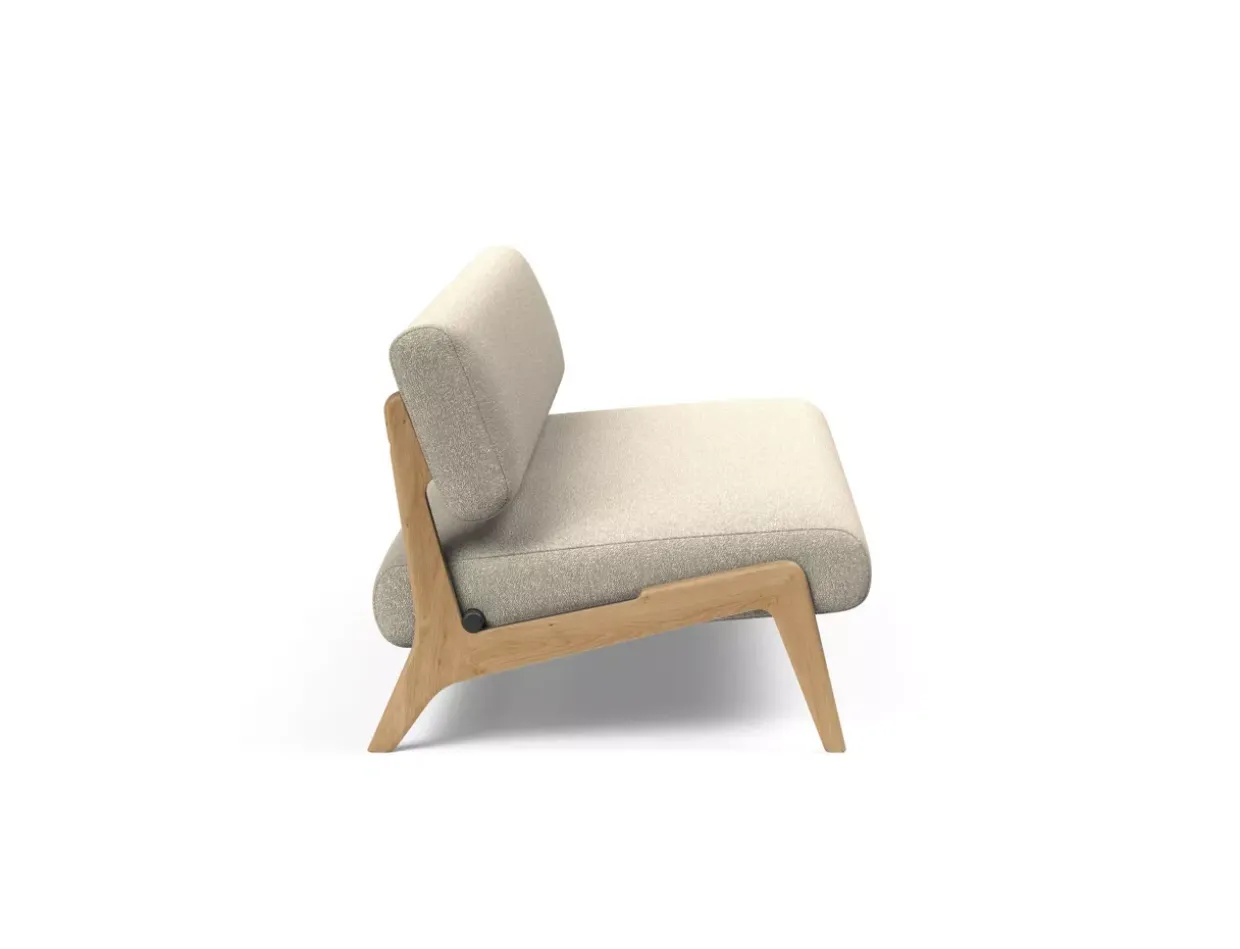Mit einem eleganten Rücken, der echt bezogen ist, fügt sich das Daybed Nolis harmonisch in moderne Wohnräume ein. Der Stil des Daybeds ist modern und strahlt durch die Kombination aus Boucle beige und eichefarbenem, natur lackiertem Holz eine natürliche Eleganz aus. Diese Daybeds vereinen ästhetisches Design mit Komfort.