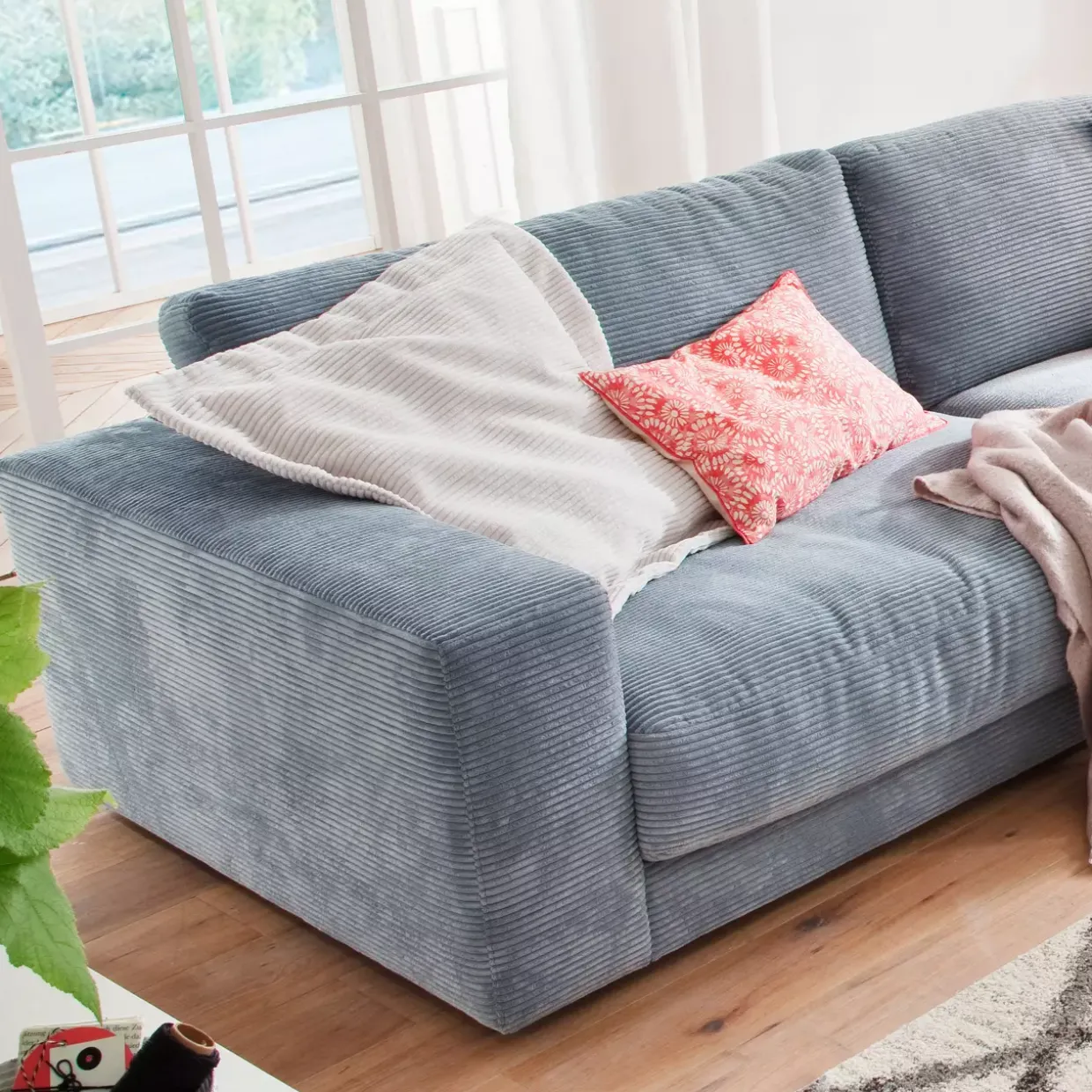 Das Seventies-Modell besticht durch seinen einzigartigen Scandi-Stil, der eine harmonische Verbindung von Retro-Charme und nordischer Schlichtheit schafft. Eine sanfte Cord light blue Farbe verleiht dem Sofa eine beruhigende Ausstrahlung und fügt sich nahtlos in verschiedene Wohnstile ein.