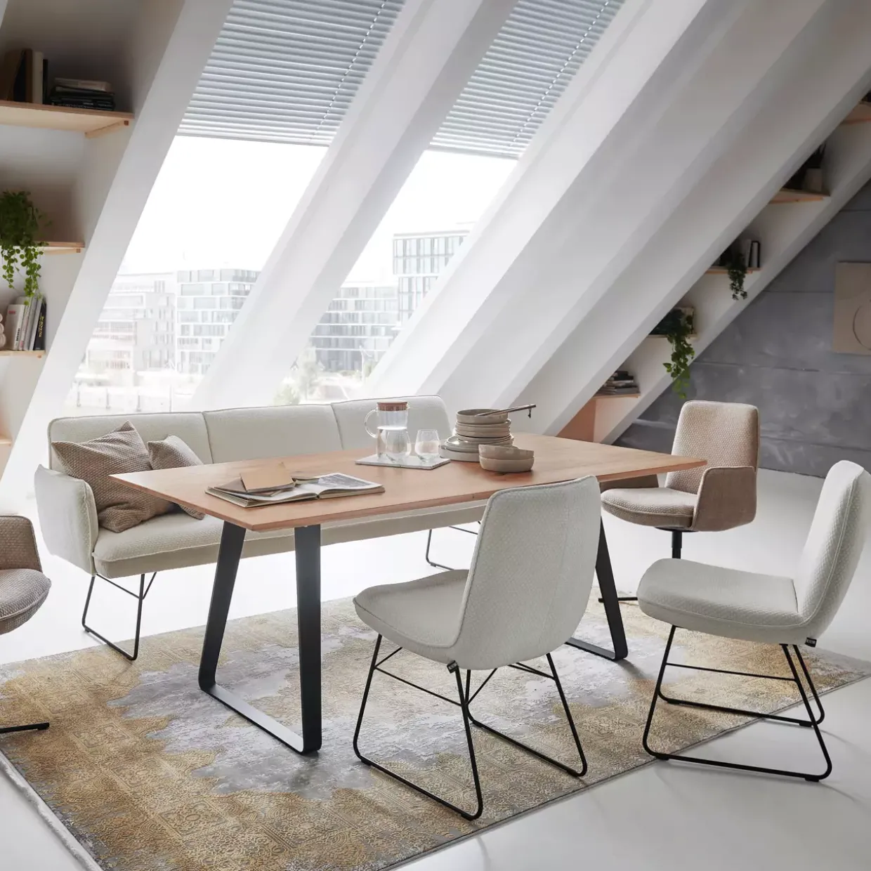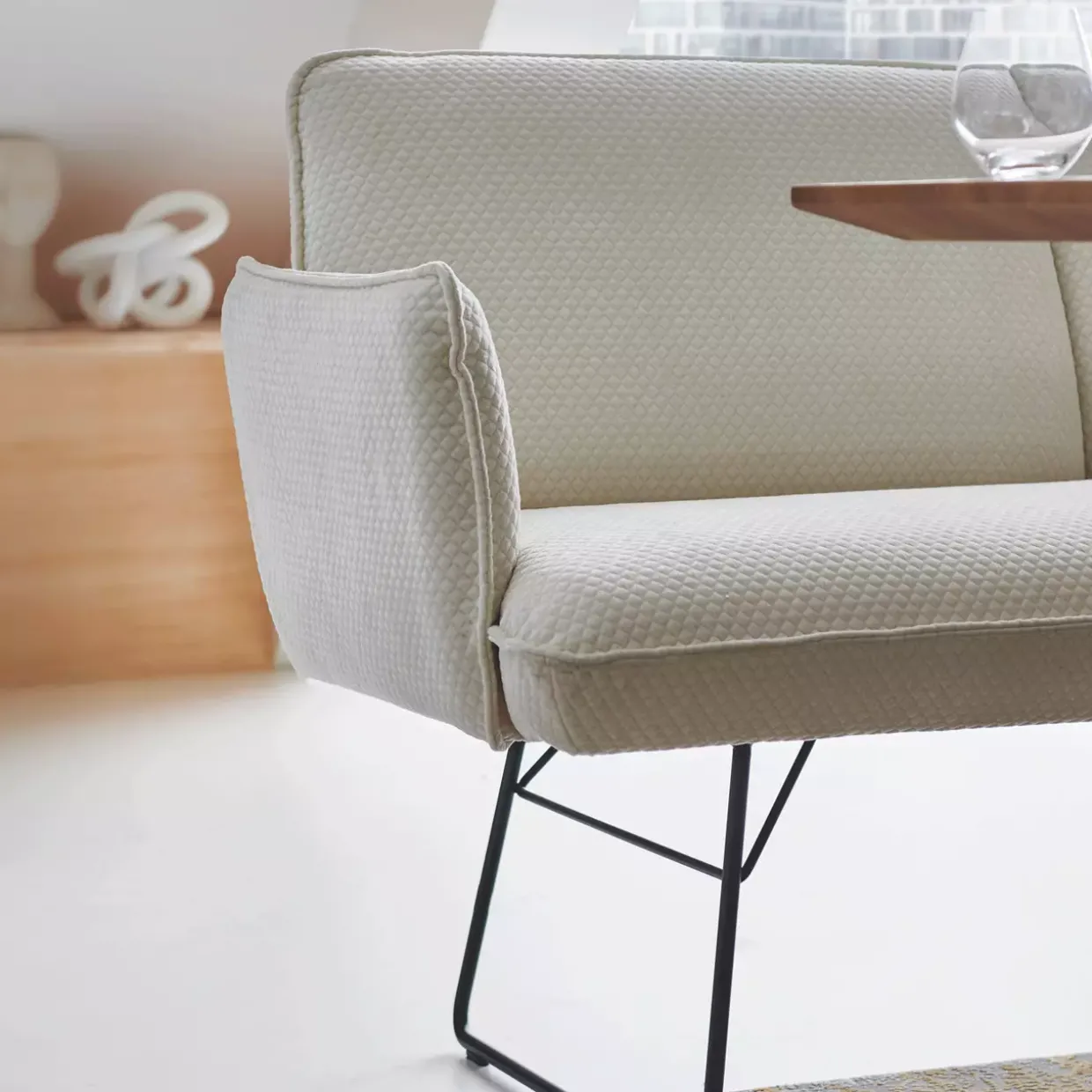 In einem modernen Stil präsentiert sich die Solobank als ein elegantes Möbelstück, das sowohl in schwarz als auch in weiß erhältlich ist. Diese zeitgemäße Bank fügt sich mühelos in verschiedene Einrichtungsstile ein und bietet eine stilvolle Sitzgelegenheit. Stoff und Metall vereinen sich hier zu einer harmonischen Kombination, die sowohl ästhetisch ansprechend als auch langlebig ist. Der Stoff sorgt für ein angenehmes Sitzgefühl, während das Metall für Stabilität und eine klare Linienführung steht. Diese Materialien ergänzen sich perfekt und verleihen der Solobank eine besondere Note, die sowohl in Wohnräumen als auch in öffentlichen Bereichen gut zur Geltung kommt.Die Vielseitigkeit dieses Möbelstücks zeigt sich in seiner Anpassungsfähigkeit an unterschiedliche Bedürfnisse und Räume. Ob im privaten Wohnzimmer oder im Empfangsbereich eines Büros, die Solobank bietet durch ihre moderne Anmutung und schlichte Eleganz eine hervorragende Möglichkeit, Sitzgelegenheiten stilvoll zu gestalten.Insgesamt überzeugt die Solobank durch ihre klare Formensprache und die gelungene Kombination aus hochwertigen Materialien. Sie vereint Funktionalität mit Design und ist somit eine hervorragende Wahl für all jene, die auf der Suche nach einem stilvollen und gleichzeitig praktischen Möbelstück sind.