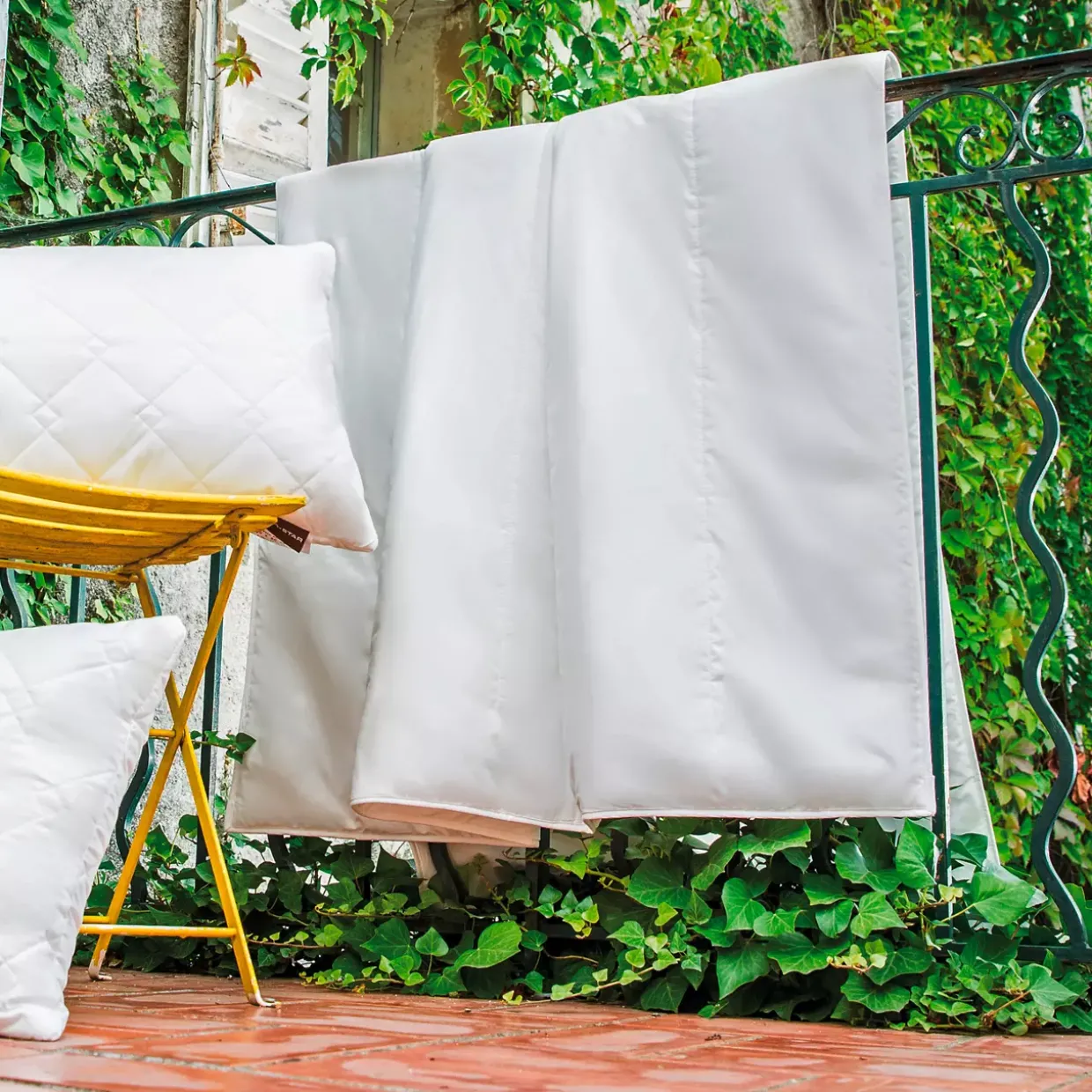 Rechteckige Formen sind zeitlos und passen perfekt in moderne Inneneinrichtungen. Diese Sommer- und Leichtdecke ist das ideale Accessoire, um Ihr Schlafzimmer in den warmen Monaten angenehm frisch zu halten. Die Farbe Weiß verleiht dem Raum eine luftige und saubere Atmosphäre, während das hochwertige Textilmaterial aus Naturfaser für ein angenehmes und weiches Gefühl auf der Haut sorgt.