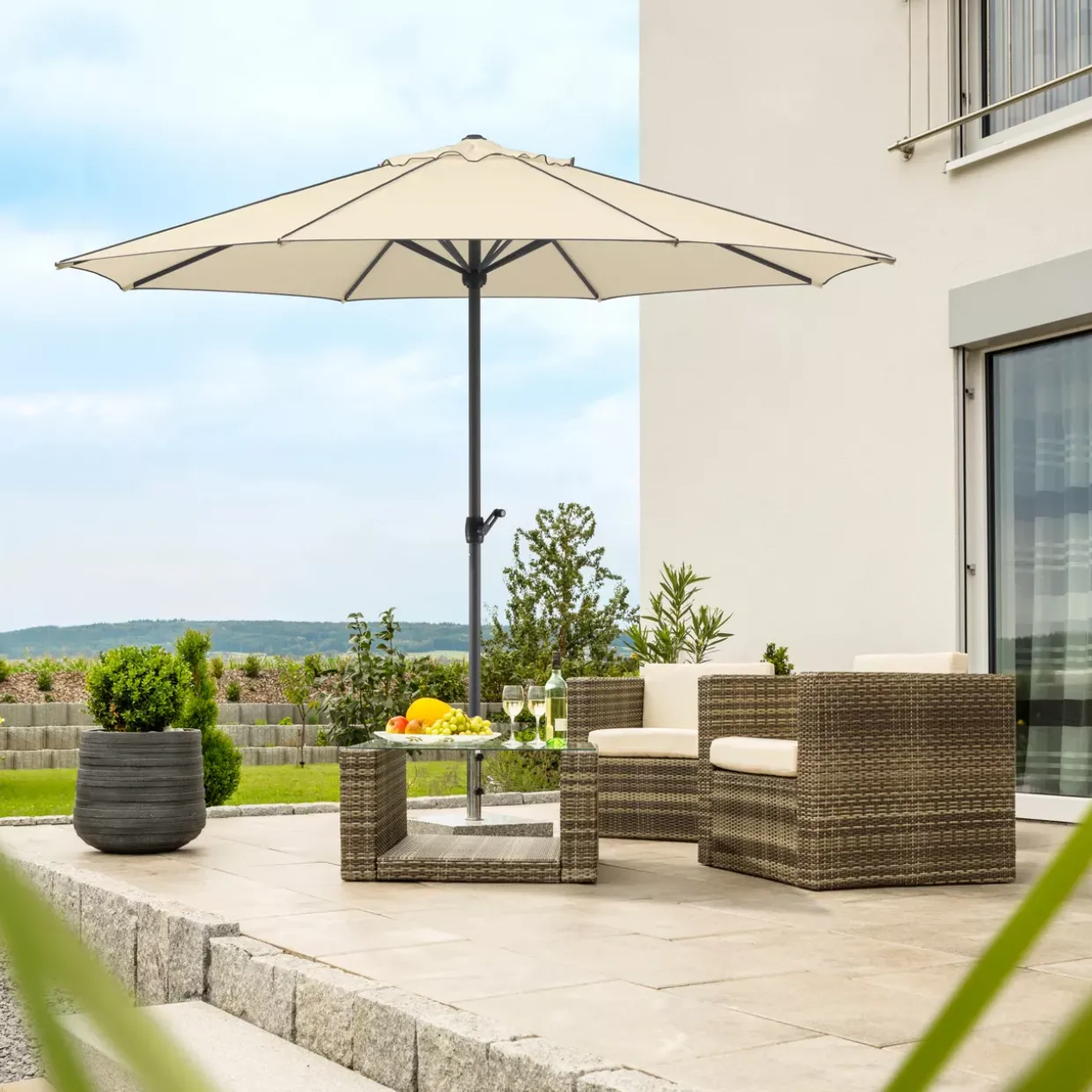 Ein moderner Stil prägt den Sonnenschirm Adria und verleiht Ihrem Außenbereich zeitgemäße Eleganz. Die natürliche Farbgebung passt sich harmonisch jeder Umgebung an und schafft eine einladende Atmosphäre. Das Modell Adria 350/8 natur bietet nicht nur Schutz vor der Sonne, sondern auch eine ästhetische Bereicherung für Ihren Garten oder Ihre Terrasse.