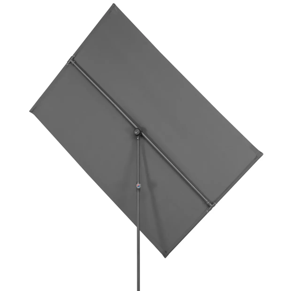 Anthrazitfarbene Eleganz trifft auf modernes Design: Der Avellino Sonnenschirm vereint Stil und Funktionalität auf beeindruckende Weise. Mit einer großzügigen Spannweite von 180×130 cm bietet er optimalen Schutz und schafft gleichzeitig eine stilvolle Atmosphäre in Ihrem Außenbereich. Die Kombination aus robustem Kunststoff und Metall sorgt für eine langlebige Konstruktion, die den täglichen Herausforderungen im Freien mühelos standhält.
