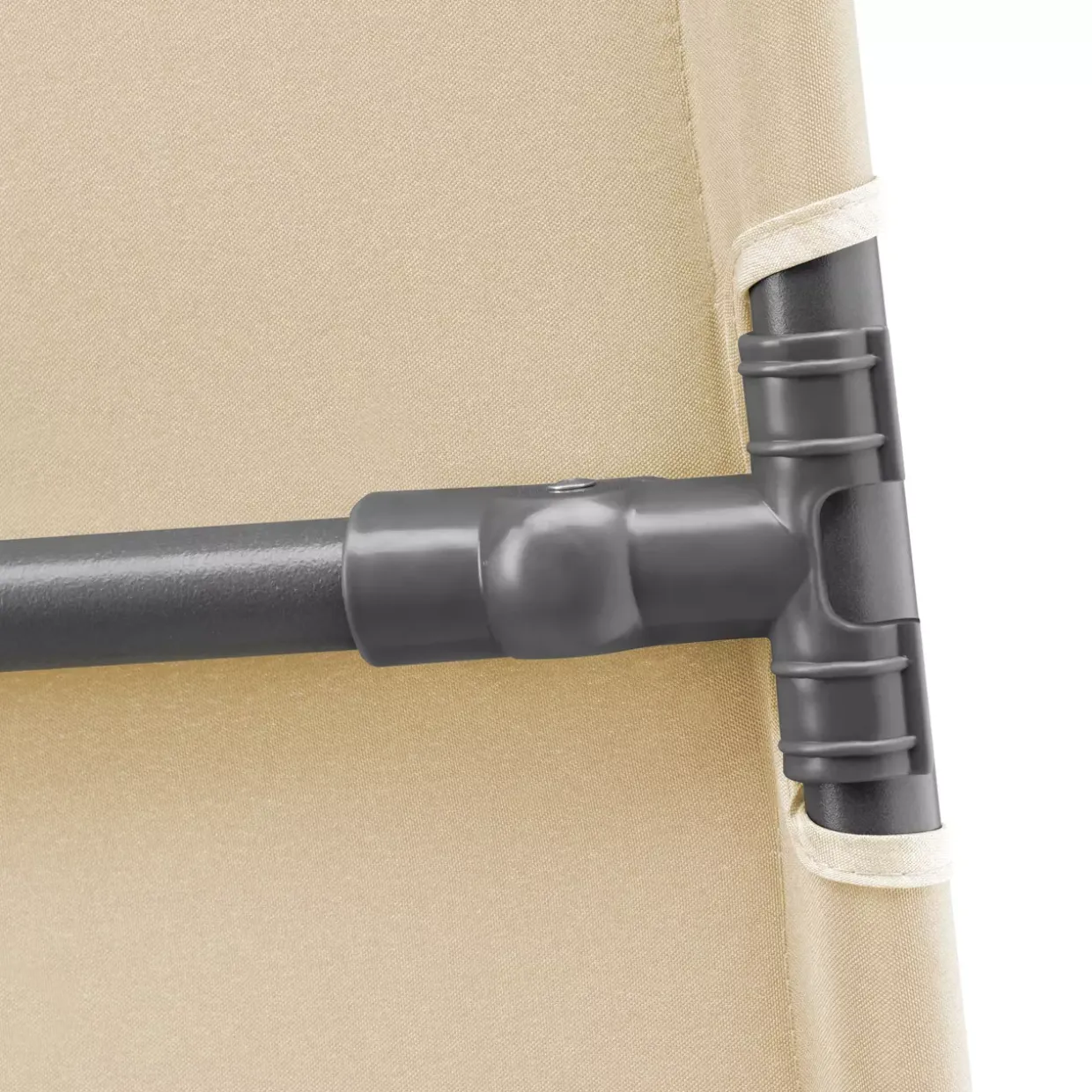 Der Mix aus Kunststoff und Metall sorgt nicht nur für eine ansprechende Optik, sondern auch für eine wetterfeste Konstruktion. Langlebigkeit und Funktionalität stehen hier im Vordergrund, sodass Sie sich auf eine unkomplizierte Nutzung verlassen können. Leicht zu reinigen und zu pflegen, erfordert dieser Sonnenschirm nur minimalen Aufwand.