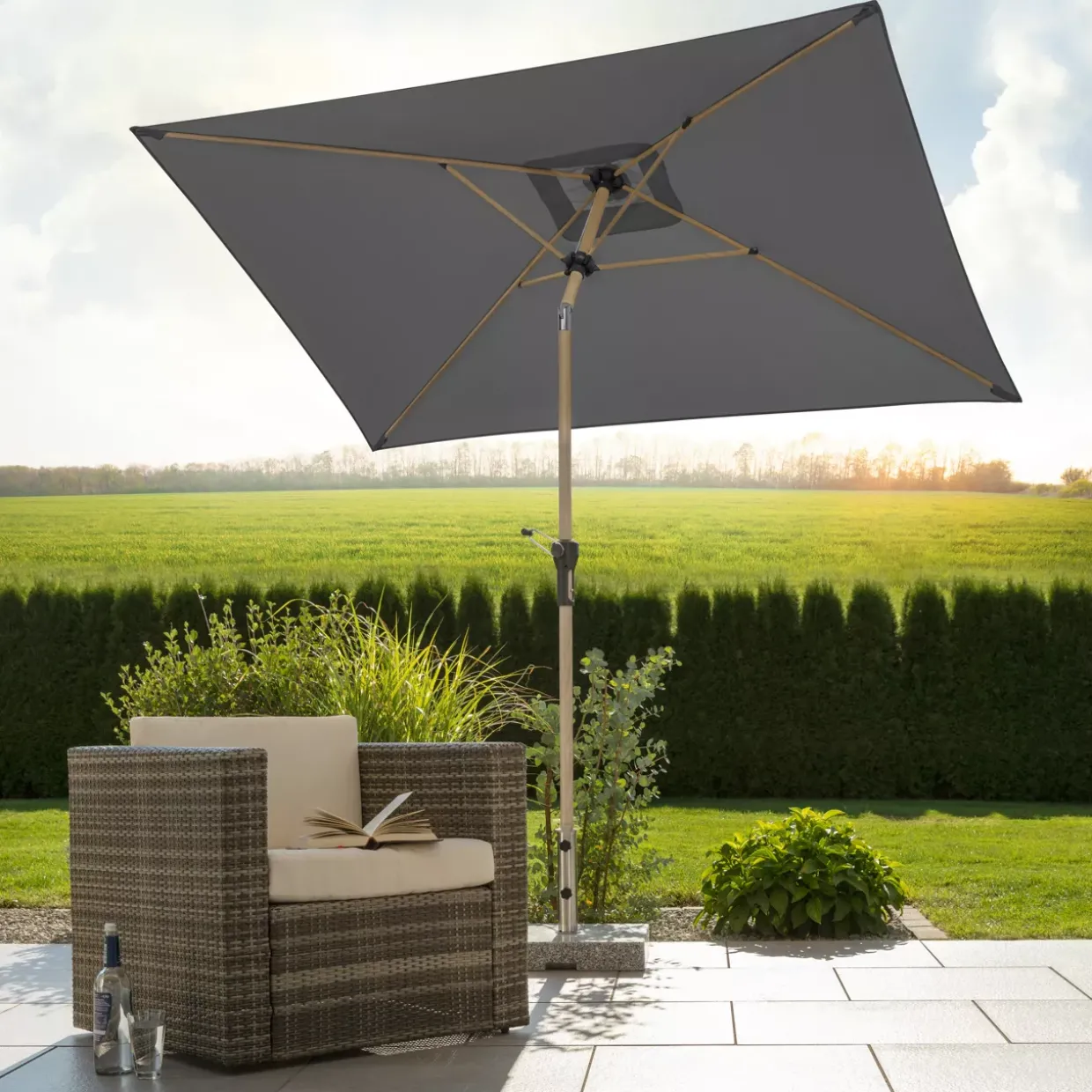 Mit seinem großzügigen Maß von 230×150 cm bietet der Cordoba ausreichend Schattenfläche, um an sonnigen Tagen entspannte Stunden im Freien zu genießen. Die stabile Konstruktion ermöglicht eine einfache Handhabung und gewährleistet, dass der Schirm sicher an seinem Platz bleibt. Anthrazit als Farbwahl fügt sich harmonisch in unterschiedliche Umgebungen ein und ergänzt sowohl klassische als auch moderne Gartenmöbel auf stilvolle Weise.