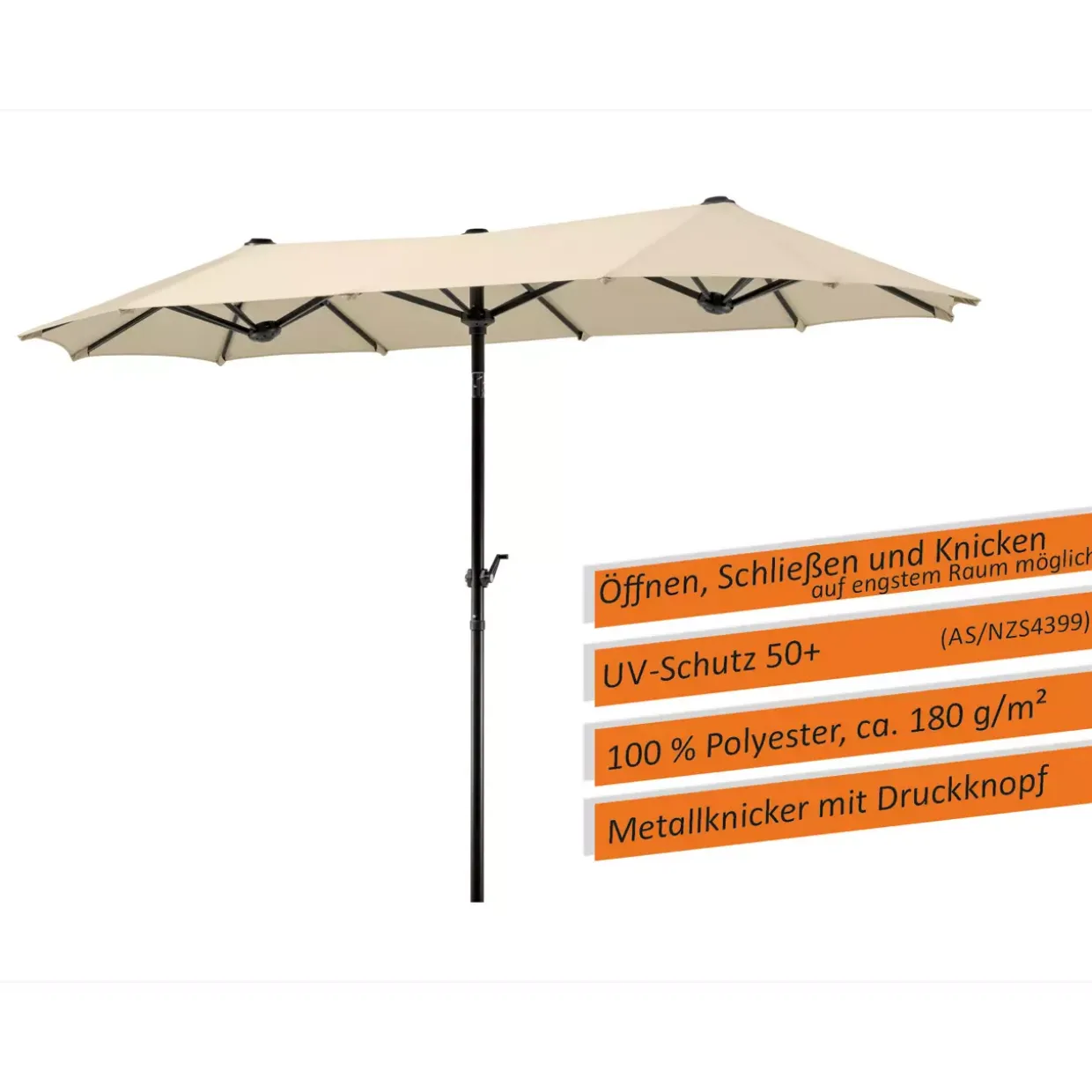 In der Farbgebung natur und anthrazit fügt sich der Sonnenschirm harmonisch in jede Umgebung ein, ohne dabei aufdringlich zu wirken. Die pulverbeschichtete Oberfläche des Stahls sorgt für zusätzlichen Schutz und verleiht dem Schirm eine zeitgemäße Note. Durchdacht gestaltet, lässt sich der Sonnenschirm selbst auf engstem Raum leicht schließen und knicken, wodurch er sich besonders flexibel an unterschiedliche Anforderungen anpassen lässt.