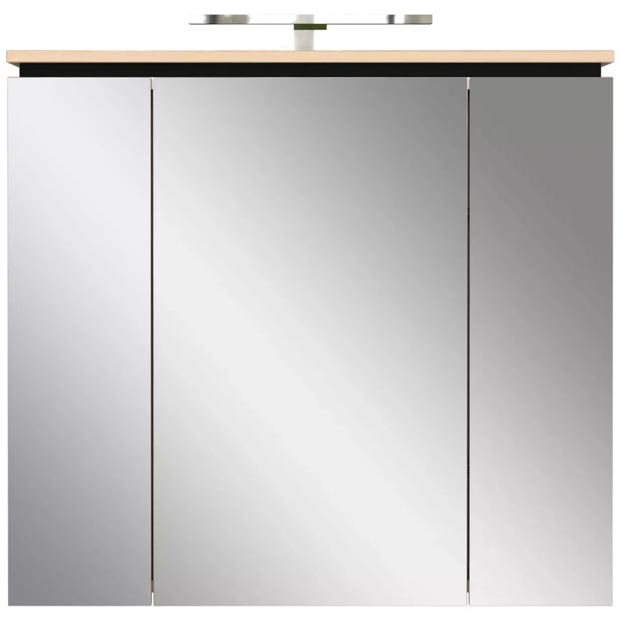 Ein modernes Highlight für Ihr Badezimmer ist der Modesto Spiegelschrank. Die melaminharzbeschichtete Oberfläche sorgt für eine strapazierfähige und pflegeleichte Nutzung. In der eleganten Kombination aus Lindberg-Eiche-Nachbildung und grauen Akzenten fügt er sich harmonisch in zeitgemäße Wohnkonzepte ein.