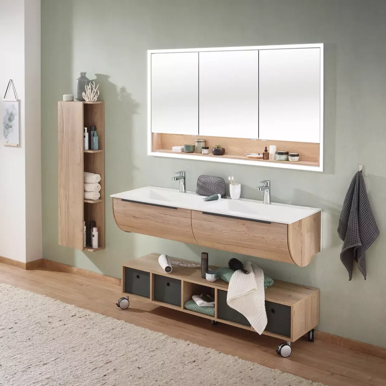 Die Halifax Eiche Nachbildung bringt einen Hauch von Natur in den Raum, während die Spiegeloberflächen das Licht wunderbar reflektieren. Sechs Glaseinlegeböden bieten reichlich Platz für all Ihre Kleidungsstücke und Accessoires und tragen zur Ordnung und Übersichtlichkeit bei.