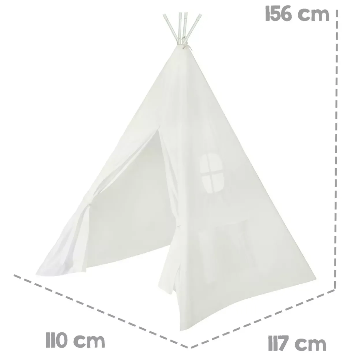 Ein modernes Indianerzelt aus robustem Canvasmaterial und einem stabilen Gerüst aus Fiberglasstäben bietet Kindern ein fantasievolles Spielerlebnis. Mit den Aufbaumaßen von 156x110x177 cm ist das Zelt geräumig genug für kleine Abenteurer und ihre Freunde. Die beige Farbgebung verleiht dem Tipi einen zeitlosen Look, der sich harmonisch in jeden Raum einfügt.